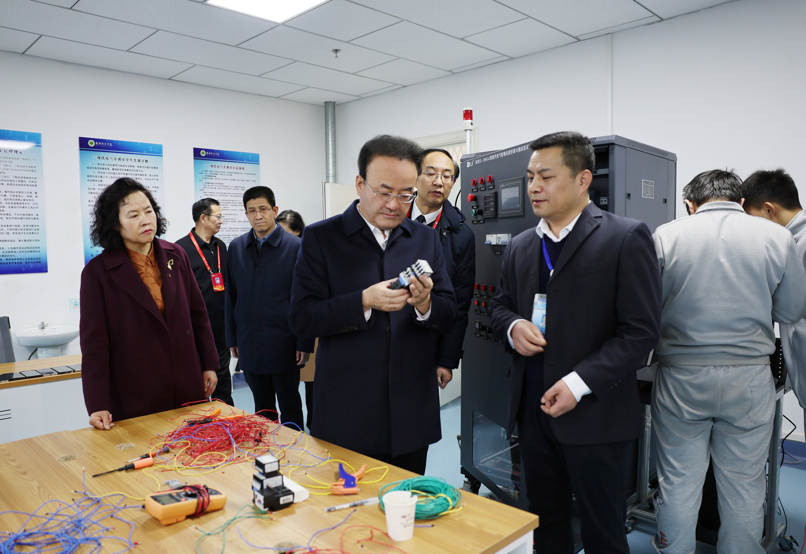 課前,王國(guó)斌調(diào)研了武威職業(yè)學(xué)院建設(shè)發(fā)展工作。他強(qiáng)調(diào),學(xué)院要始終堅(jiān)持辦學(xué)正確政治方向,落實(shí)立德樹(shù)人根本任務(wù),緊盯科技前沿,面向市場(chǎng),不斷優(yōu)化學(xué)校和專業(yè)布局,提高特色化辦學(xué)水平,培養(yǎng)更多的高素質(zhì)專業(yè)化技能人才。廣大教師要履行教書(shū)育人職責(zé),在專業(yè)教學(xué)中注重加強(qiáng)思想引領(lǐng)、言傳身教,努力培養(yǎng)擔(dān)當(dāng)民族復(fù)興大任的時(shí)代新人。