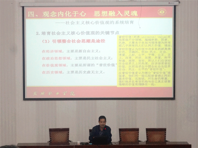 1020日,我系邀請學院副院長翟存祥教授在學院正德廳為全系師生作了一場題為《如何踐行社會主義核心價值觀》的專題講座,講座由我系黨總支書記晏素珍主持。