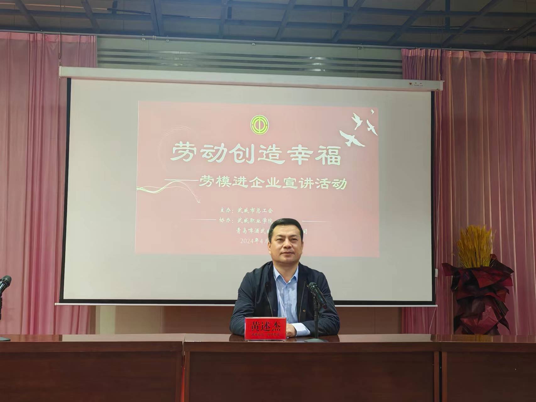 活動邀請武威市五一勞動獎章獲得者、中科低碳新能源技術(shù)學院院長黃述杰為現(xiàn)場職工作了一場生動的宣講,他以“勞動創(chuàng)造幸福”為主題,結(jié)合自身奮斗經(jīng)歷,運用通俗易懂的語言,圍繞勞模工匠精神的基本內(nèi)涵、基本要求等方面,為大家進行深入淺出地闡述和講解。他的宣講深深感染了在場的每一個人,大家紛紛表示,要以身邊的勞模工匠為榜樣,立足本職崗位,做好本職工作,為推進武威高質(zhì)量發(fā)展貢獻自己的力量。