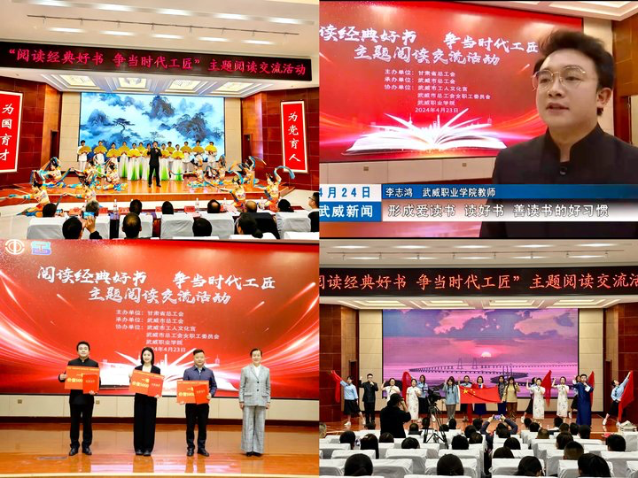 4月23日,由省總工會主辦、市總工會承辦,武威職業(yè)學院協(xié)辦的“閱讀經(jīng)典好書爭當時代工匠”主題讀書交流活動在菁英廳隆重舉行。省總工會三級調研員馬艷,市總工會黨組書記、常務副主席康金蓮,學校黨委副書記翟存祥出席活動。全市職工書屋、便利型職工閱讀站點、勞模書架建設單位工會負責人,市、縣區(qū)總工會干部職工230多人參加活動。