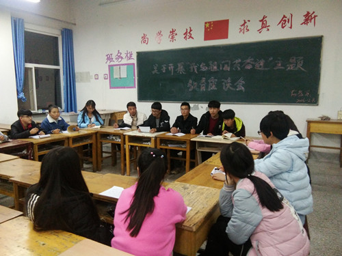 通過(guò)組織各班團(tuán)干部開展 “我與祖國(guó)共奮進(jìn)”主題座談會(huì),讓團(tuán)干部們對(duì)歷史有了深刻的了解,也讓同學(xué)們?cè)谶@次座談會(huì)中深刻領(lǐng)悟到身為中華兒女要勿忘恥辱,為實(shí)現(xiàn)中華民族偉大復(fù)興的中國(guó)夢(mèng)而勤奮學(xué)習(xí)。同時(shí),各班團(tuán)支部以形式多樣的主題團(tuán)會(huì),表達(dá)出為了實(shí)現(xiàn)“中國(guó)夢(mèng)”,讓屈辱的歷史不再重演,將要萬(wàn)分珍惜今天這來(lái)之不易的和平生活,努力學(xué)習(xí),不斷進(jìn)取。