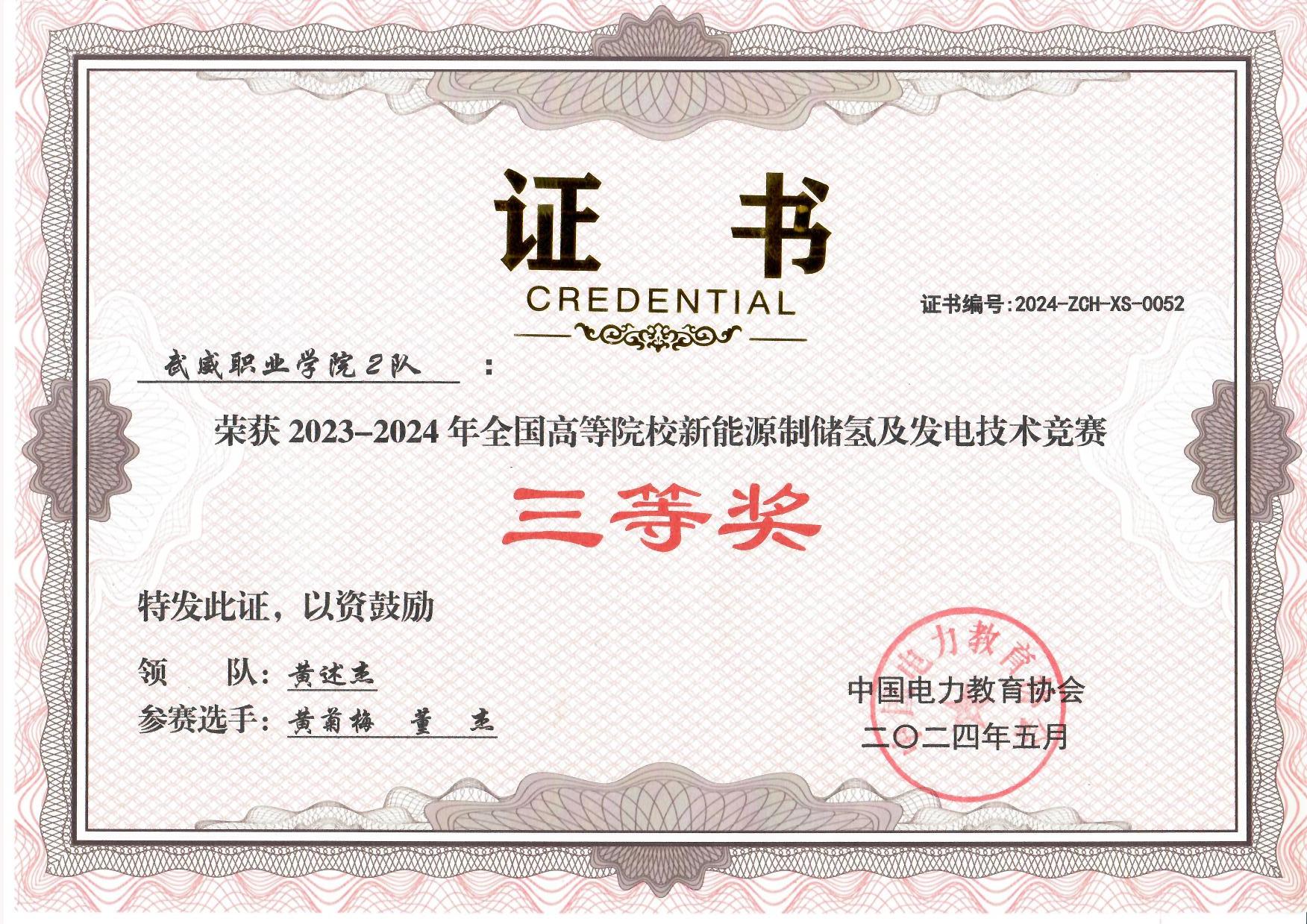 近日,在重慶電力高等??茖W(xué)校舉行的全國(guó)首屆高等學(xué)校新能源制儲(chǔ)氫及發(fā)電技術(shù)競(jìng)賽中,中科低碳新能源技術(shù)學(xué)院教師王續(xù)峰和學(xué)生王智組成的參賽1隊(duì)榮獲全國(guó)二等獎(jiǎng),教師黃菊梅和學(xué)生董杰組成參賽2隊(duì)榮獲全國(guó)三等獎(jiǎng)。?