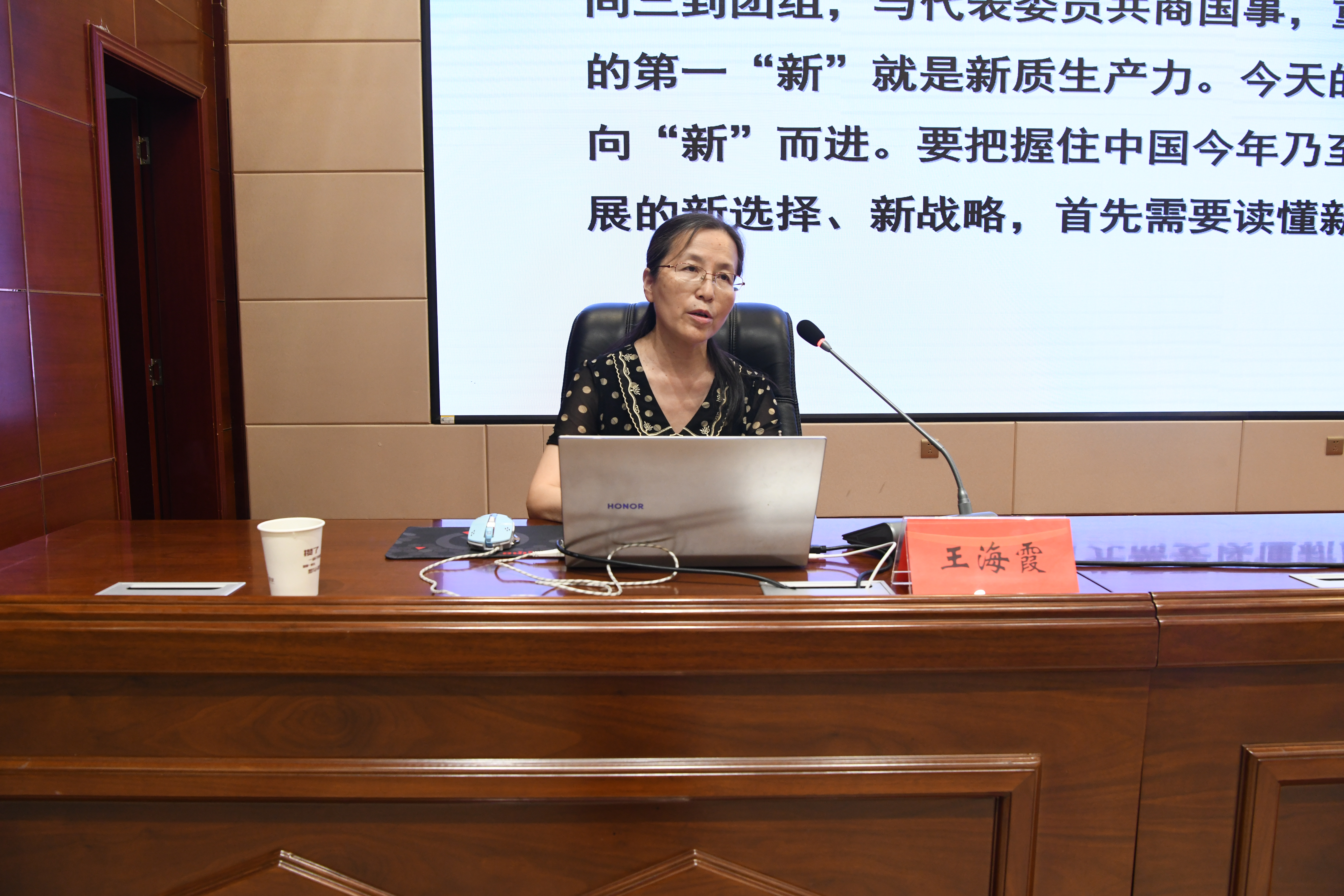 王海霞教授以《新質(zhì)生產(chǎn)力的內(nèi)涵要義、發(fā)展要求和發(fā)展重點(diǎn)》為題,通過多個(gè)鮮活的案例深入闡釋了新質(zhì)生產(chǎn)力的理論內(nèi)涵及核心要義,緊扣社會(huì)熱點(diǎn),將理論轉(zhuǎn)化為知識(shí)點(diǎn),為我們帶來很多啟發(fā)。