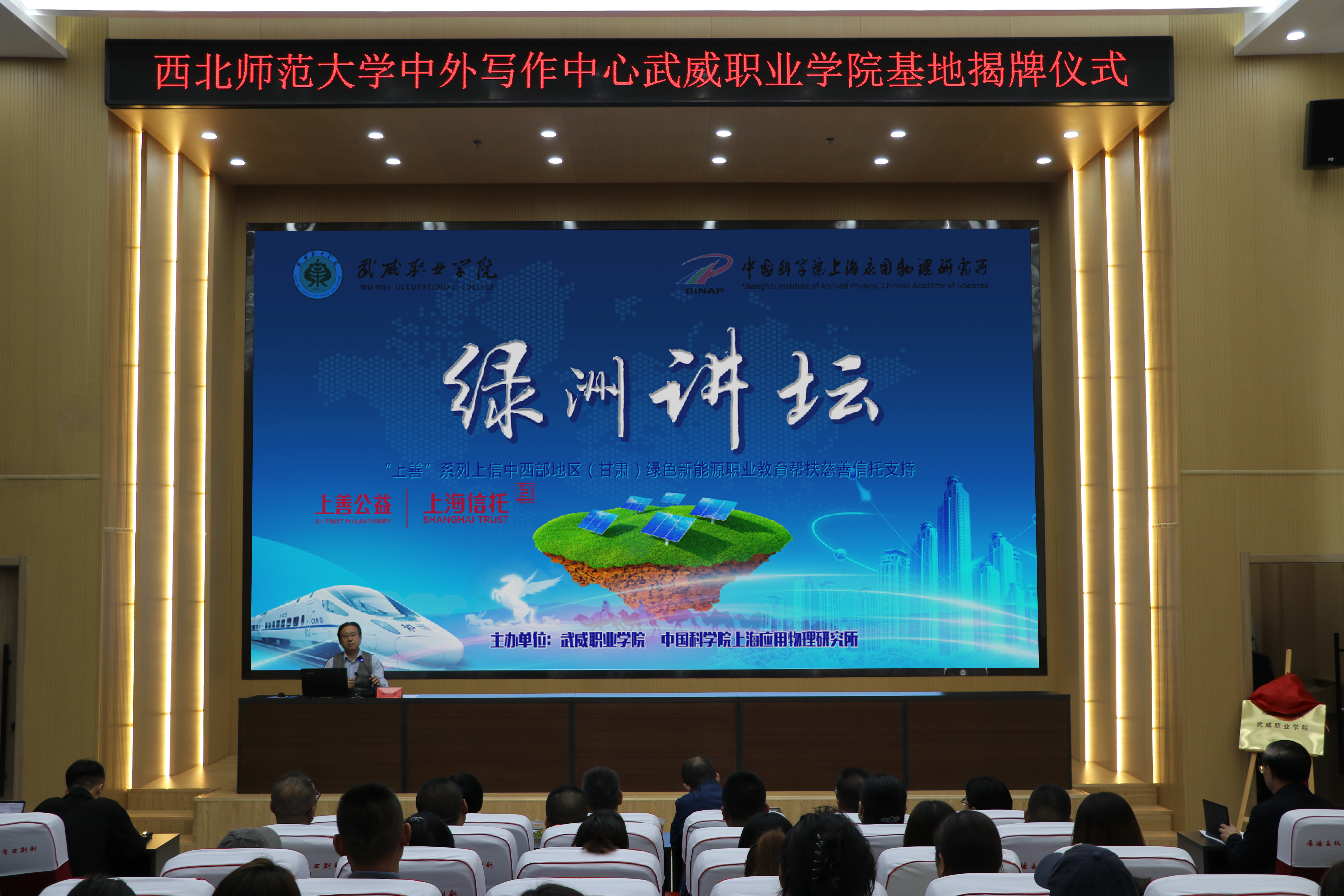 5月28日下午,西北師范大學(xué)中外寫作中心武威職業(yè)學(xué)院基地揭牌儀式暨報(bào)告會在武威職業(yè)學(xué)院能源科技樓一樓學(xué)術(shù)報(bào)告廳隆重舉行。