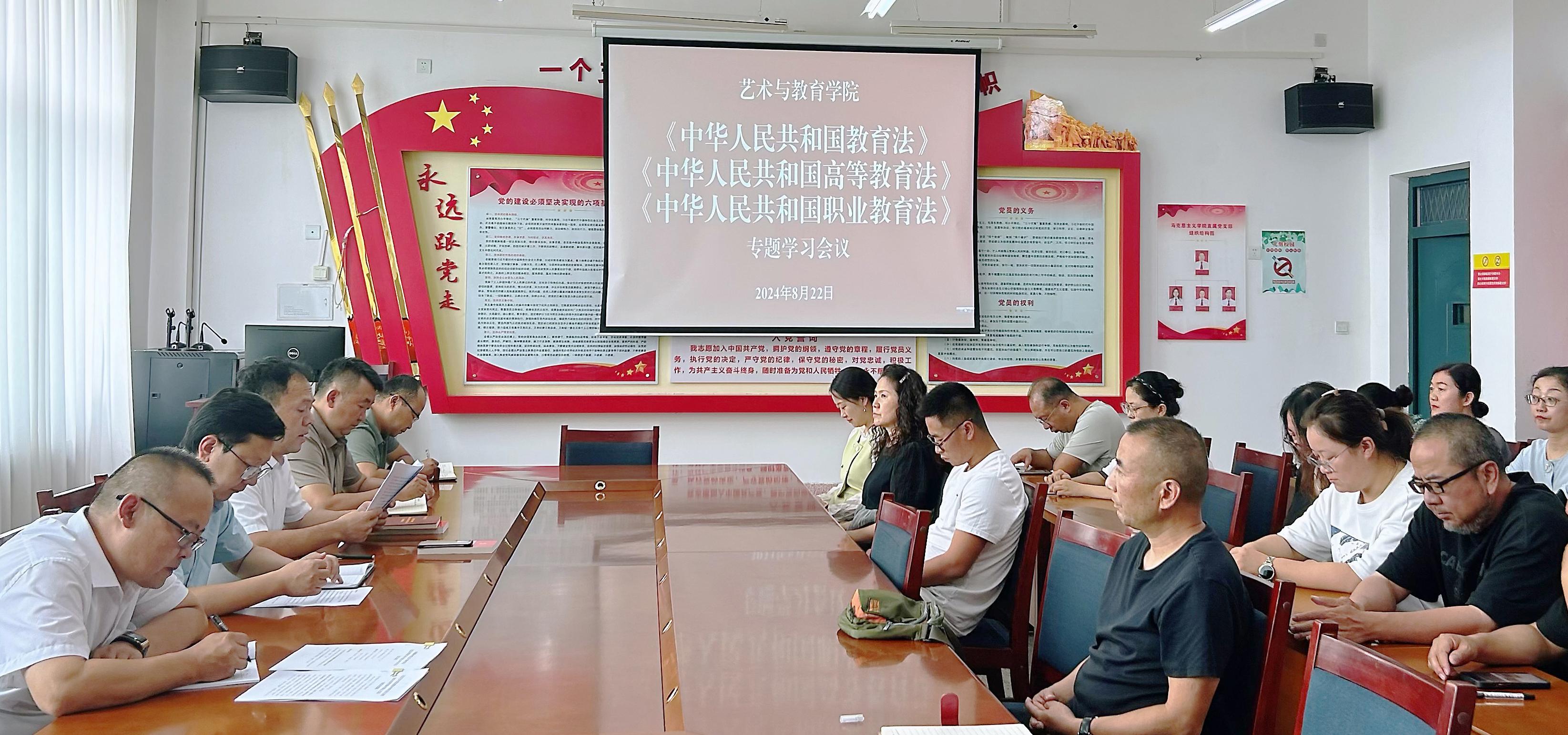 為進一步提高教師的法律法規(guī)意識,加強教師的師德師風建設,轉變觀念、解放思想,樹立現(xiàn)代職業(yè)教育觀念,扎實推動教育教學工作高質量發(fā)展,8月22日下午,藝術與教育學院組織全體教職工專題學習《中華人民共和國教育法》《中華人民共和國高等教育法》《中華人民共和國職業(yè)教育法》等教育相關法律法規(guī)及政策文件。會議由黨總支書記王政主持。