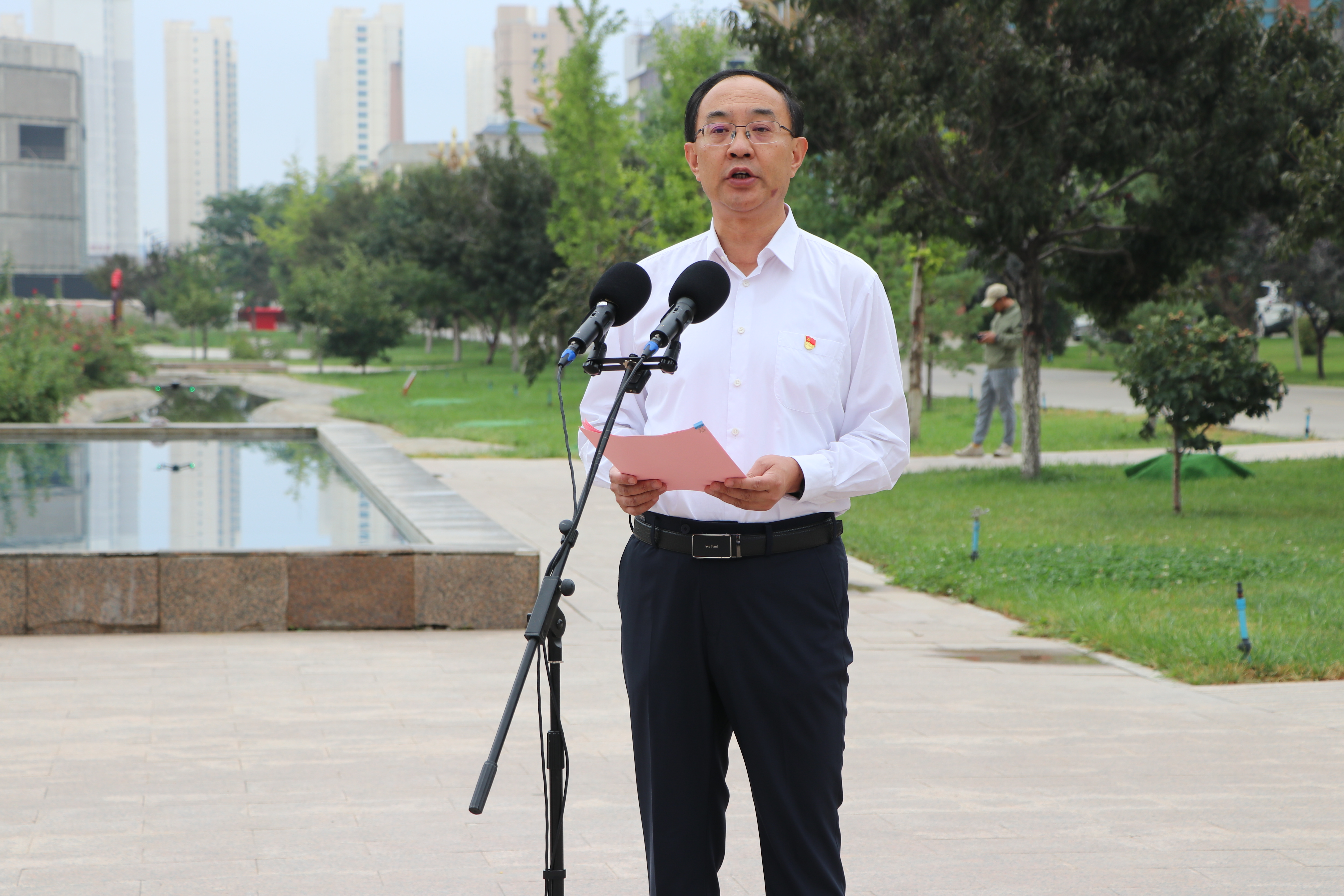 9月2日上午,學(xué)校在圖書館東側(cè)國旗廣場舉行新學(xué)期升國旗儀式,黨委書記王宏向全體師生講授“開學(xué)第一課”。學(xué)校領(lǐng)導(dǎo)班子成員、全體中層干部,2024年新入職教師、退伍大學(xué)生士兵代表和各二級學(xué)院師生代表共480余人參加活動,黨委副書記、校長張開禮主持活動。