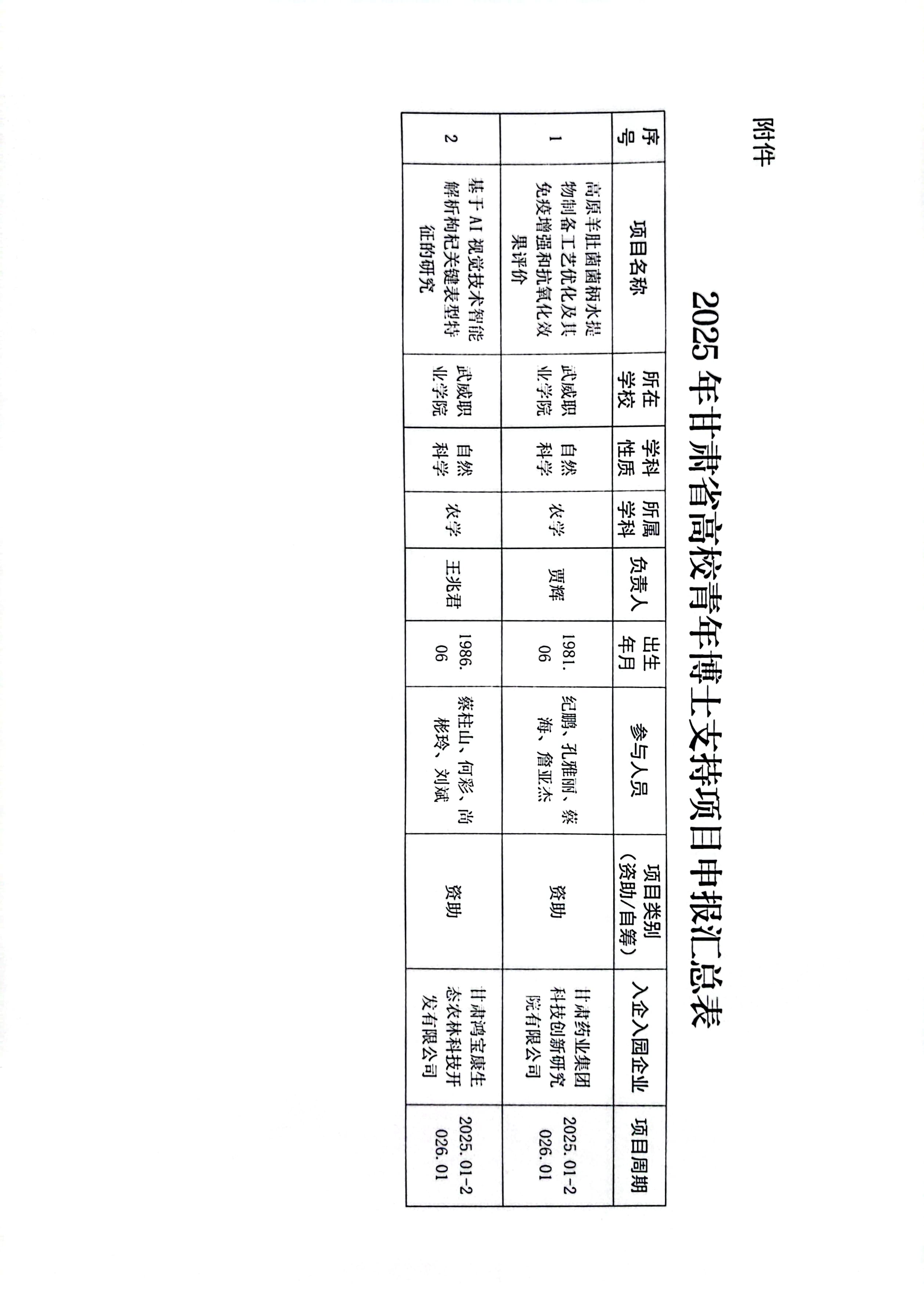 武威職業(yè)學(xué)院關(guān)于2025年度青年博士支持項(xiàng)目評審結(jié)果的公示