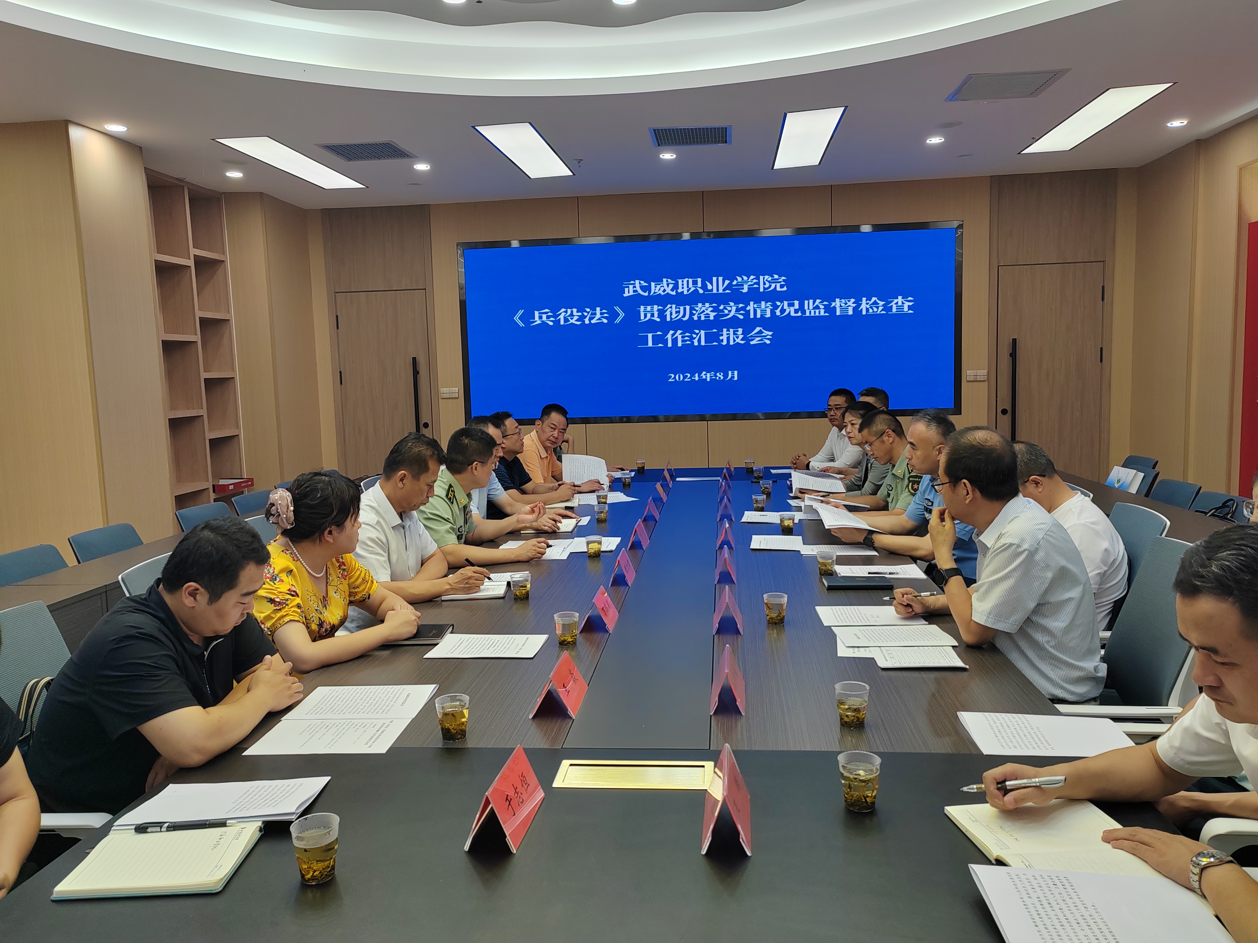 8月2日上午,省級《兵役法》貫徹落實情況監(jiān)督檢查工作組一行9人在甘肅省軍區(qū)動員局征集處程龍?zhí)庨L的帶領下,在武威軍分區(qū)大校副司令員吳沖、武威市司法局副局長黨萬馳和武威市教育局副局長馬曉麗的陪同下,來我校調(diào)研《兵役法》貫徹落實情況。學校黨委書記王宏,黨委副書記翟存祥,黨委委員、副校長王永緒陪同調(diào)研。