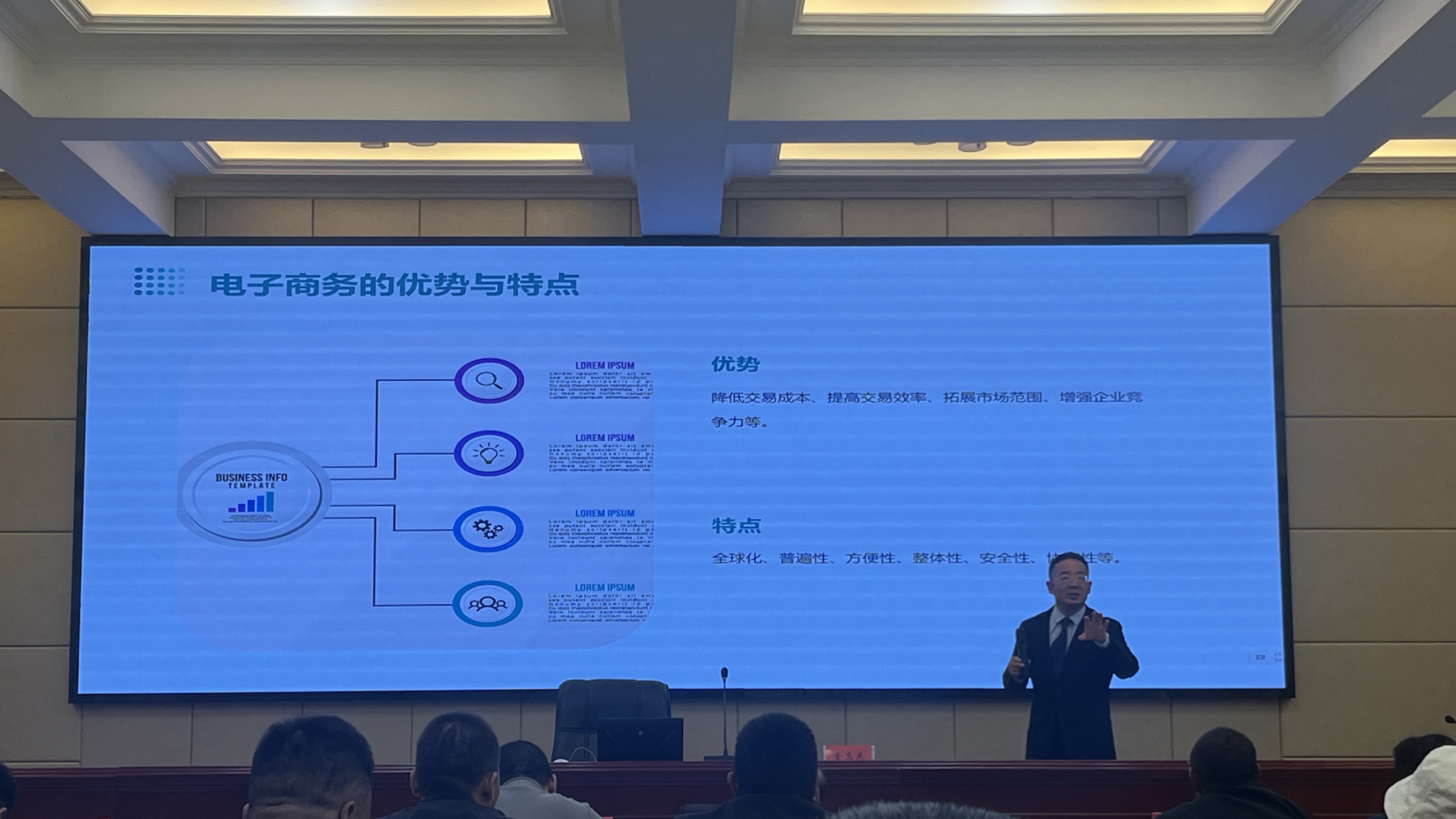 開班式后金玉龍老師做了電子商務(wù)發(fā)展、法律及經(jīng)營風(fēng)險培訓(xùn)講座。