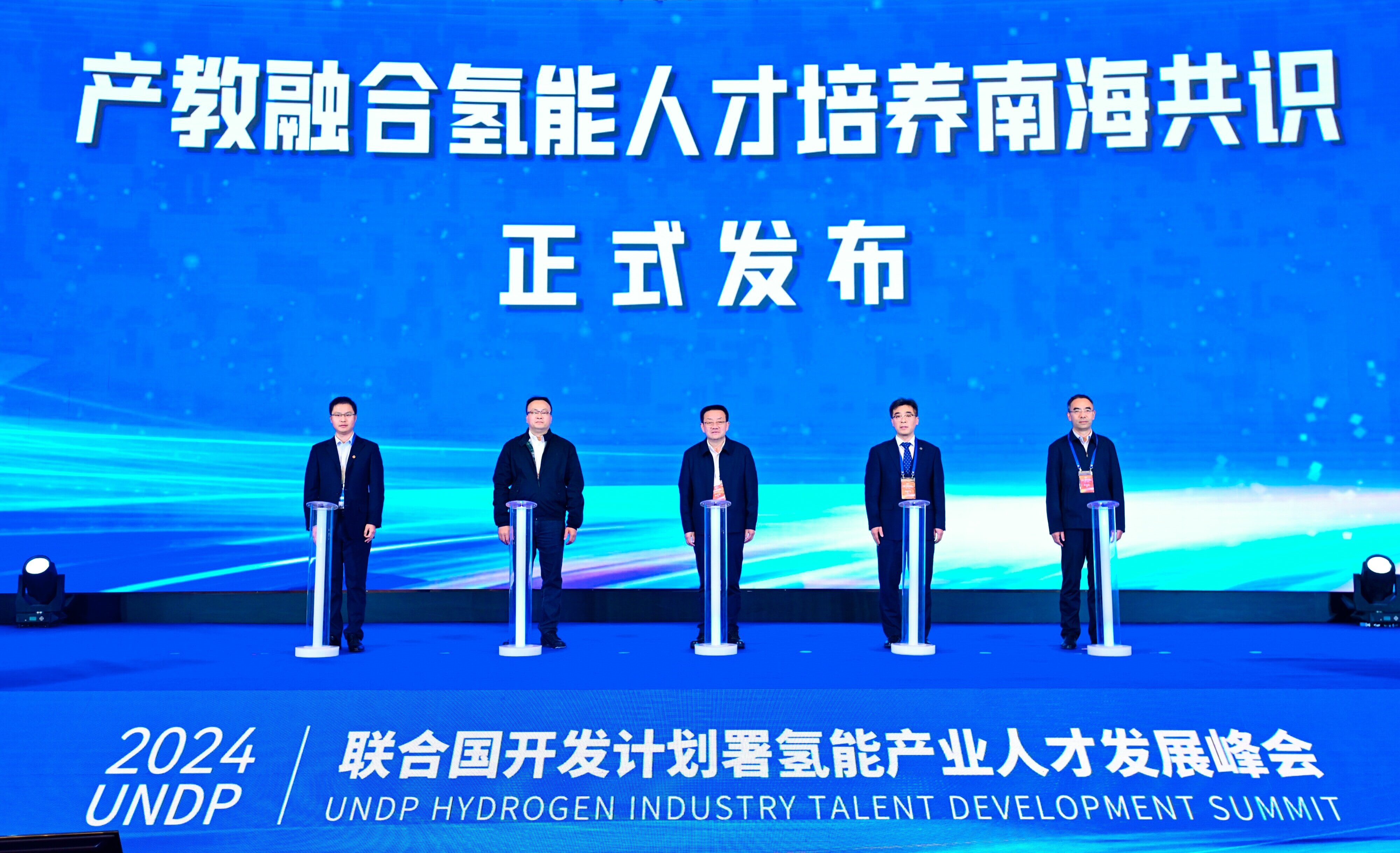 11月28日,由聯(lián)合國開發(fā)計(jì)劃署駐華代表處、佛山市南海區(qū)人民政府聯(lián)合主辦的聯(lián)合國開發(fā)計(jì)劃署氫能產(chǎn)業(yè)人才發(fā)展峰會(huì)于佛山市成功舉行。本次峰會(huì)作為全國首個(gè)由國際機(jī)構(gòu)主導(dǎo)的國際氫能產(chǎn)業(yè)人才會(huì)議,聚焦氫能領(lǐng)域高素質(zhì)技能人才的培養(yǎng),推動(dòng)產(chǎn)教深度融合,探索為產(chǎn)業(yè)發(fā)展提供重要技能型人才支撐的路徑。我校中科低碳新能源技術(shù)學(xué)院院長黃述杰、王廣華博士和王續(xù)峰老師參加此次會(huì)議。