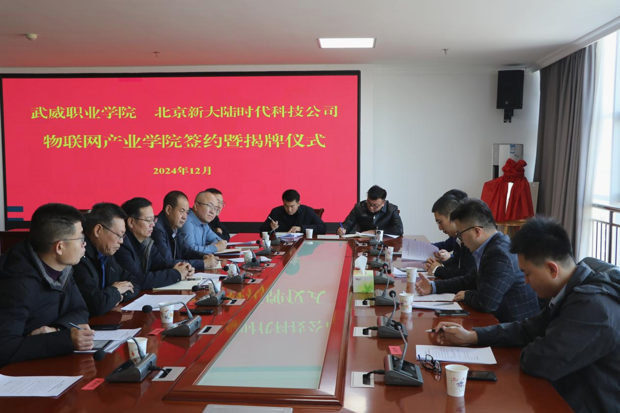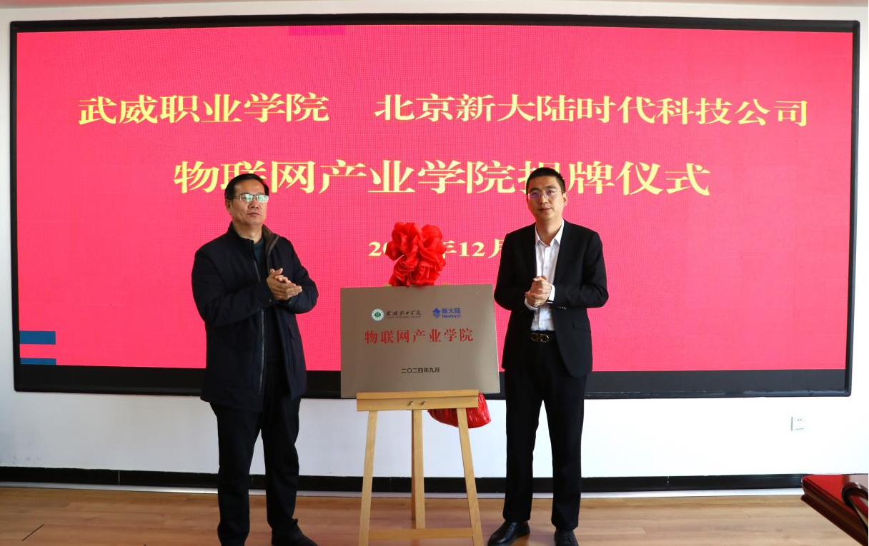 為全面深化產(chǎn)教融合,加強校企合作,進一步提高我校人才培養(yǎng)質量。12月3日,學校在能源科技樓811會議室舉行武威職業(yè)學院和北京新大陸時代科技公司物聯(lián)網(wǎng)產(chǎn)業(yè)學院簽約暨揭牌儀式。北京新大陸時代科技公司西北區(qū)總監(jiān)劉寧、技術總監(jiān)樊斌,相關業(yè)務部門負責人,學校校長、黨委副書記張開禮、黨委副書記翟存祥、相關部門負責人及教師代表參加活動。黨委委員、副校長王永緒主持儀式。