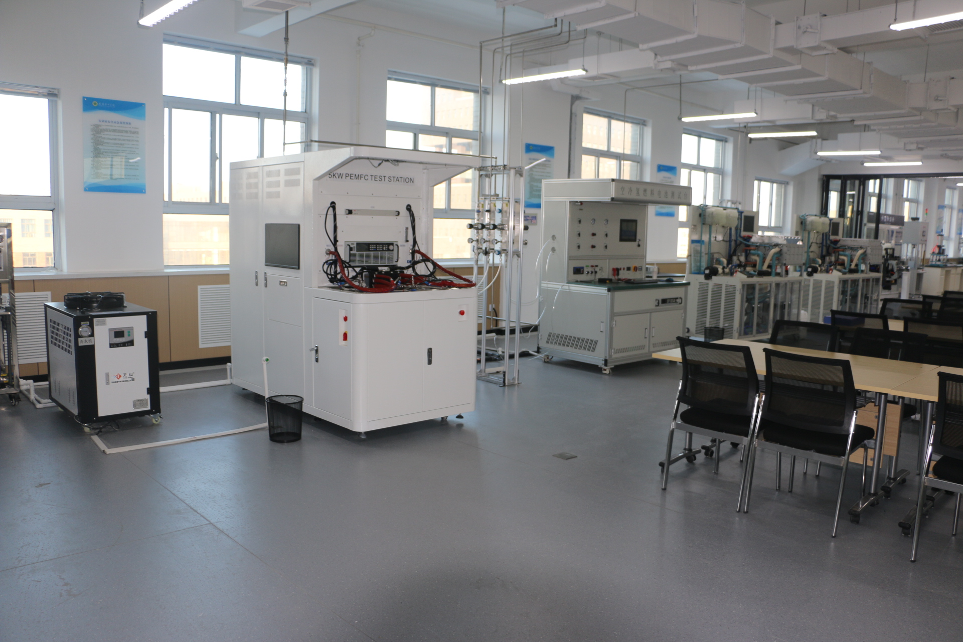 本實訓室主要服務的課程有:燃料電池技術、氫能裝備檢測與維護、氫能汽車動力系統(tǒng)運行。主要設備有:裁切機、噴涂機、點膠機、壓機、恒溫恒濕箱。