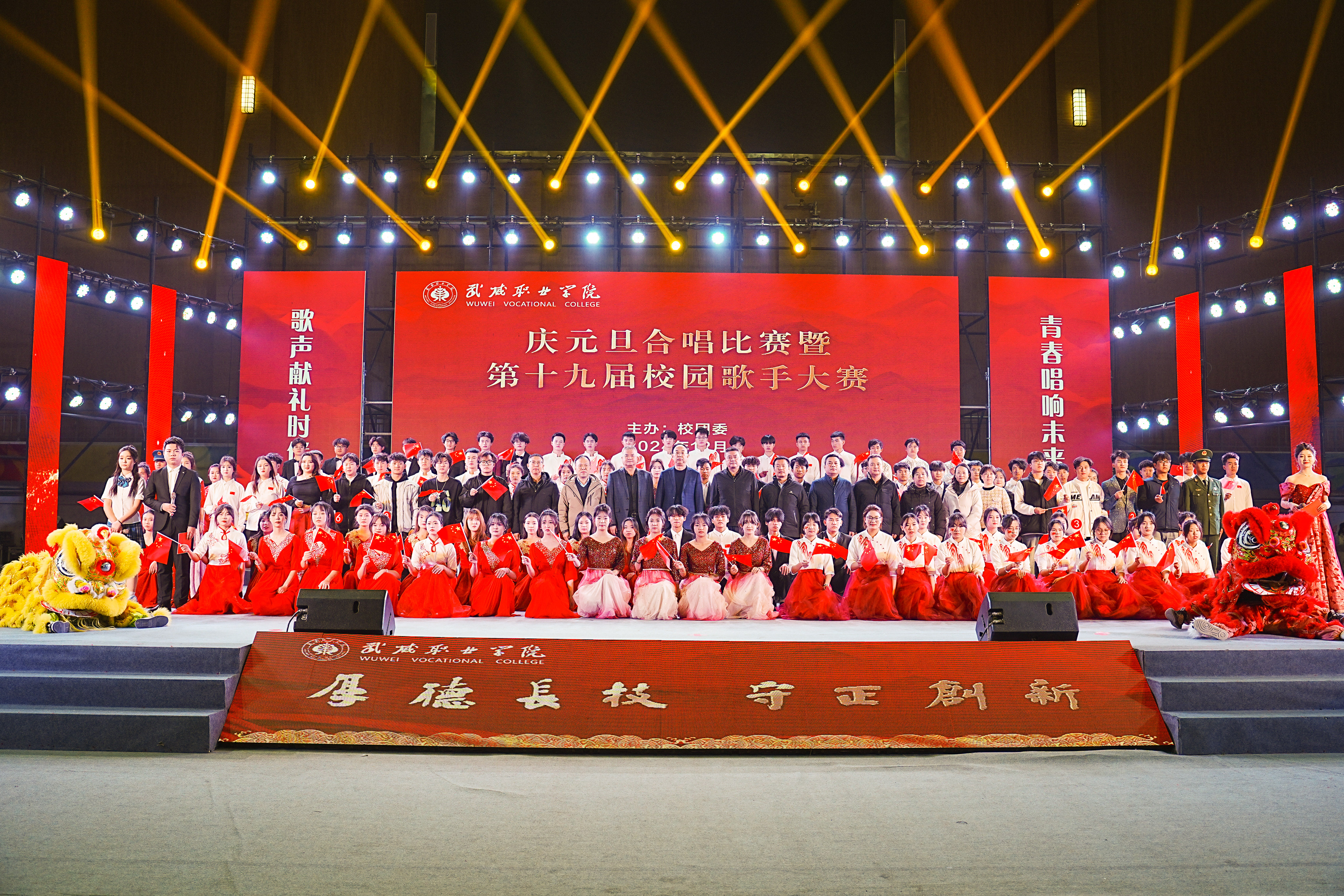 歌聲獻(xiàn)禮時(shí)代,青春唱響未來(lái)。12月26日晚,學(xué)校“慶元旦”合唱比賽暨第十九屆校園歌手大賽在體育館成功舉辦。學(xué)校黨委書(shū)記王宏出席活動(dòng)并為獲獎(jiǎng)集體和個(gè)人頒獎(jiǎng),黨委委員、副校長(zhǎng)王守云出席活動(dòng),各二級(jí)學(xué)院和相關(guān)部門(mén)負(fù)責(zé)人與2000余名師生現(xiàn)場(chǎng)觀看了比賽。