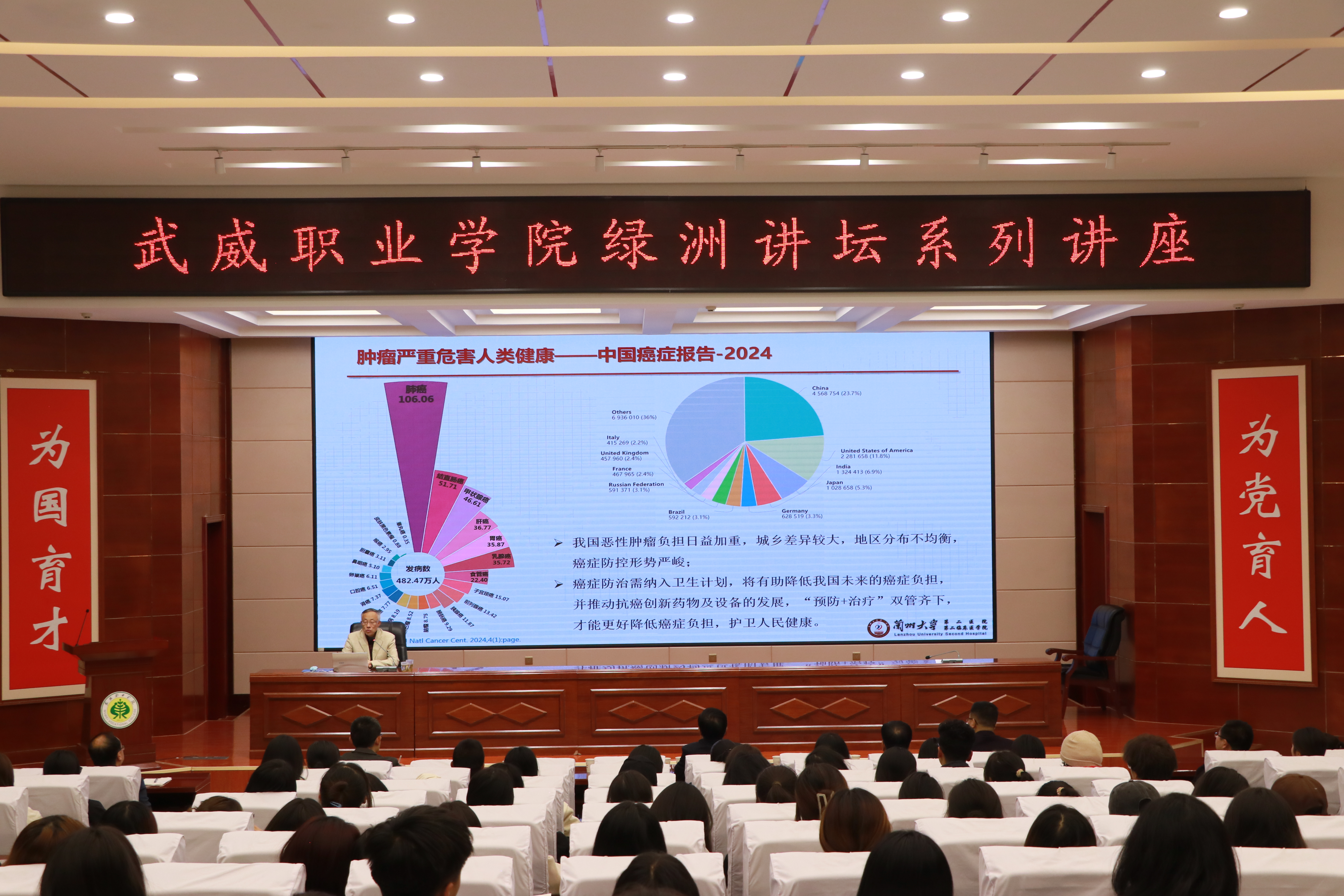 報告會由學(xué)校校長、黨委副書記張開禮主持,特邀蘭州大學(xué)第二醫(yī)院王志平教授作了“腫瘤臨床放射治療的過去、現(xiàn)在和未來與人才”的主題講座,甘肅省武威醫(yī)學(xué)科學(xué)院腫瘤醫(yī)院醫(yī)護(hù)人員代表、蘭州大學(xué)實習(xí)生代表和學(xué)校師生代表共計220余人參加了報告會。