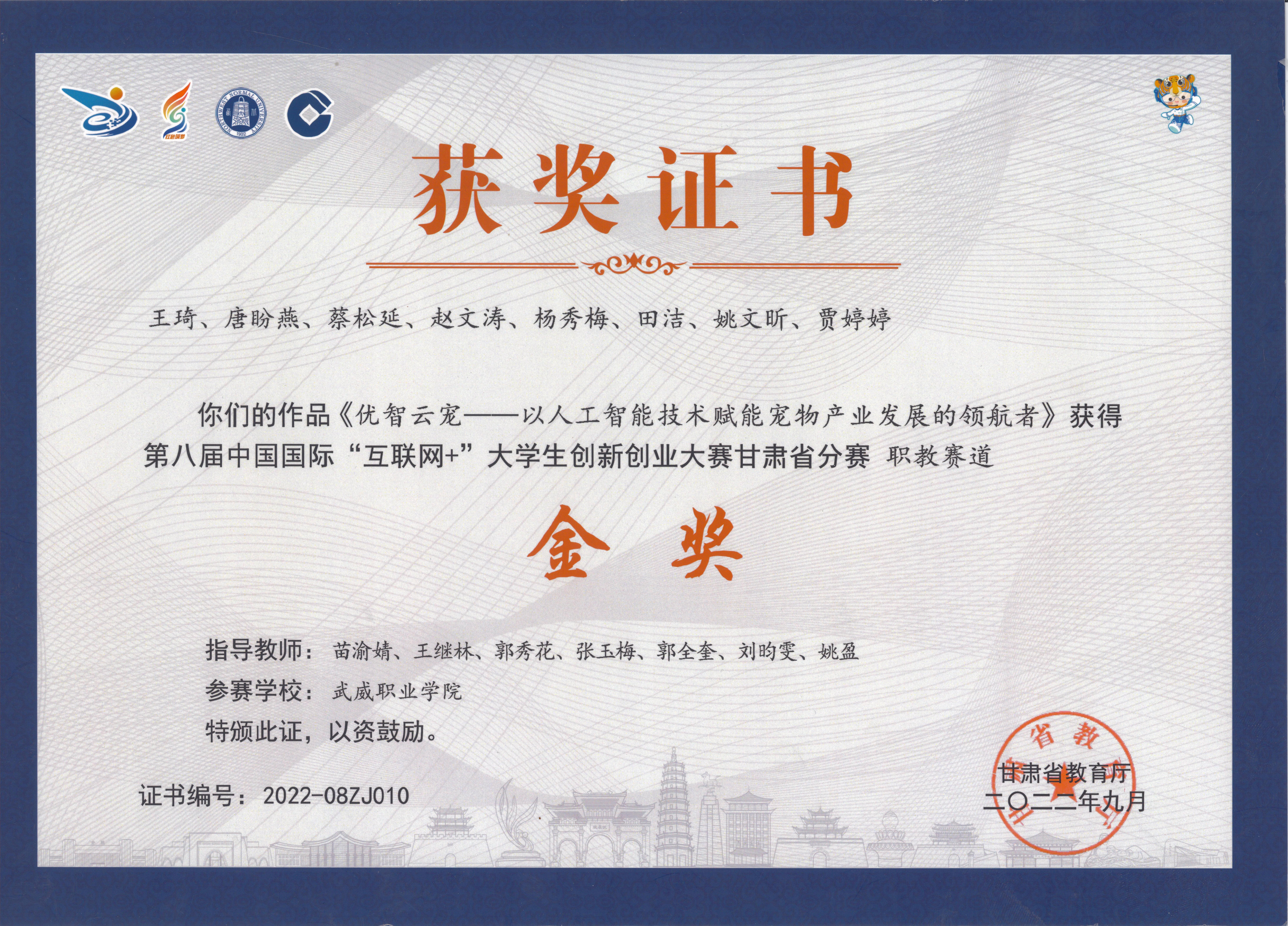 學(xué)生獲第九屆中國(guó)國(guó)際“互聯(lián)網(wǎng)+”大學(xué)生創(chuàng)新創(chuàng)業(yè)大賽甘肅賽區(qū)金獎(jiǎng)