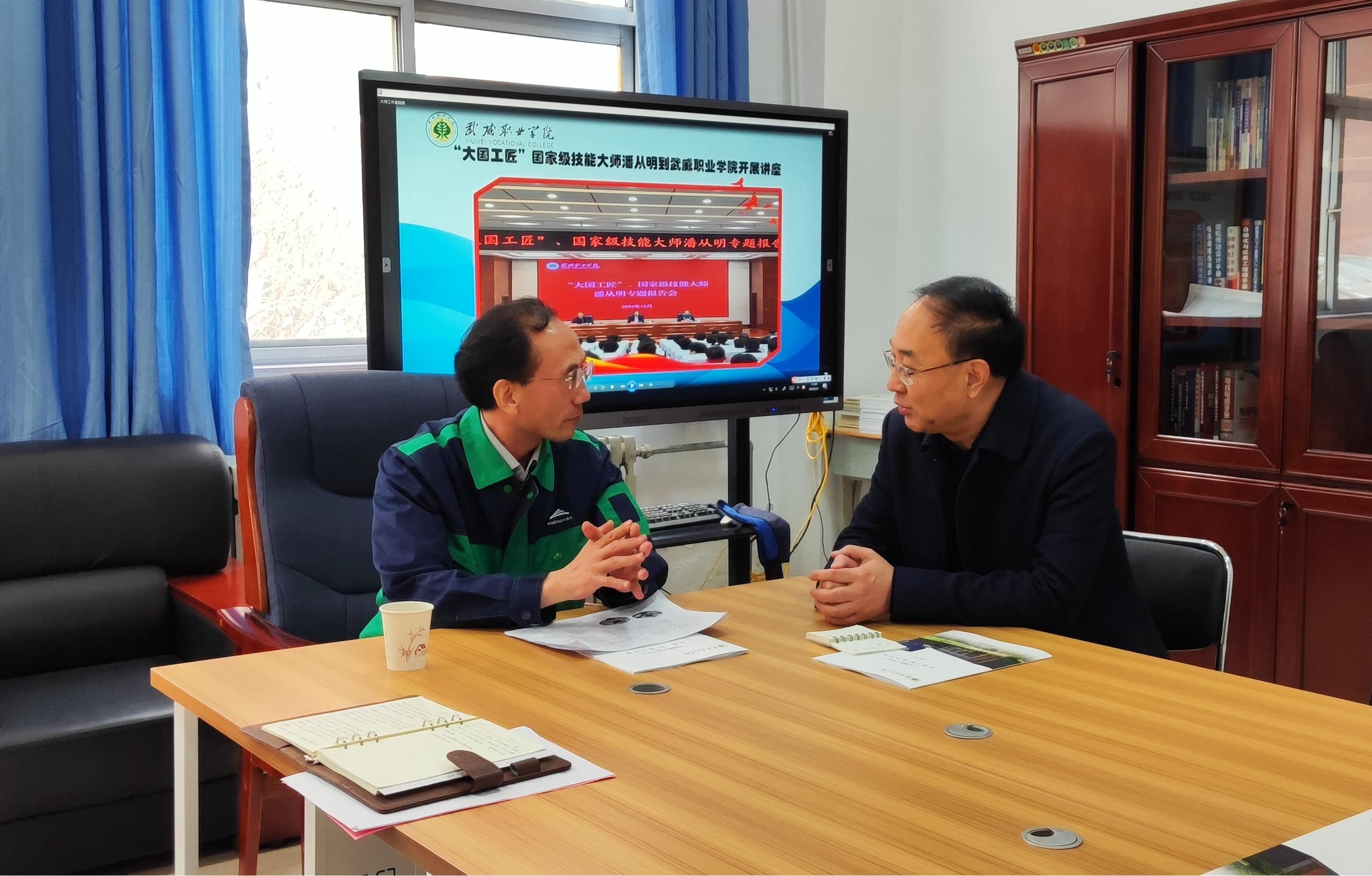 講座后,潘從明來到學(xué)校智能制造實訓(xùn)中心進(jìn)行現(xiàn)場指導(dǎo),認(rèn)真聽取了實訓(xùn)中心的實訓(xùn)場地、實訓(xùn)裝備、實訓(xùn)方式等情況,并與校領(lǐng)導(dǎo)及師生代表進(jìn)行了深入交流。他勉勵師生傳承工匠精神,積極投身實踐,提高動手能力,在實踐中快速成長為高素質(zhì)技術(shù)技能型人才。