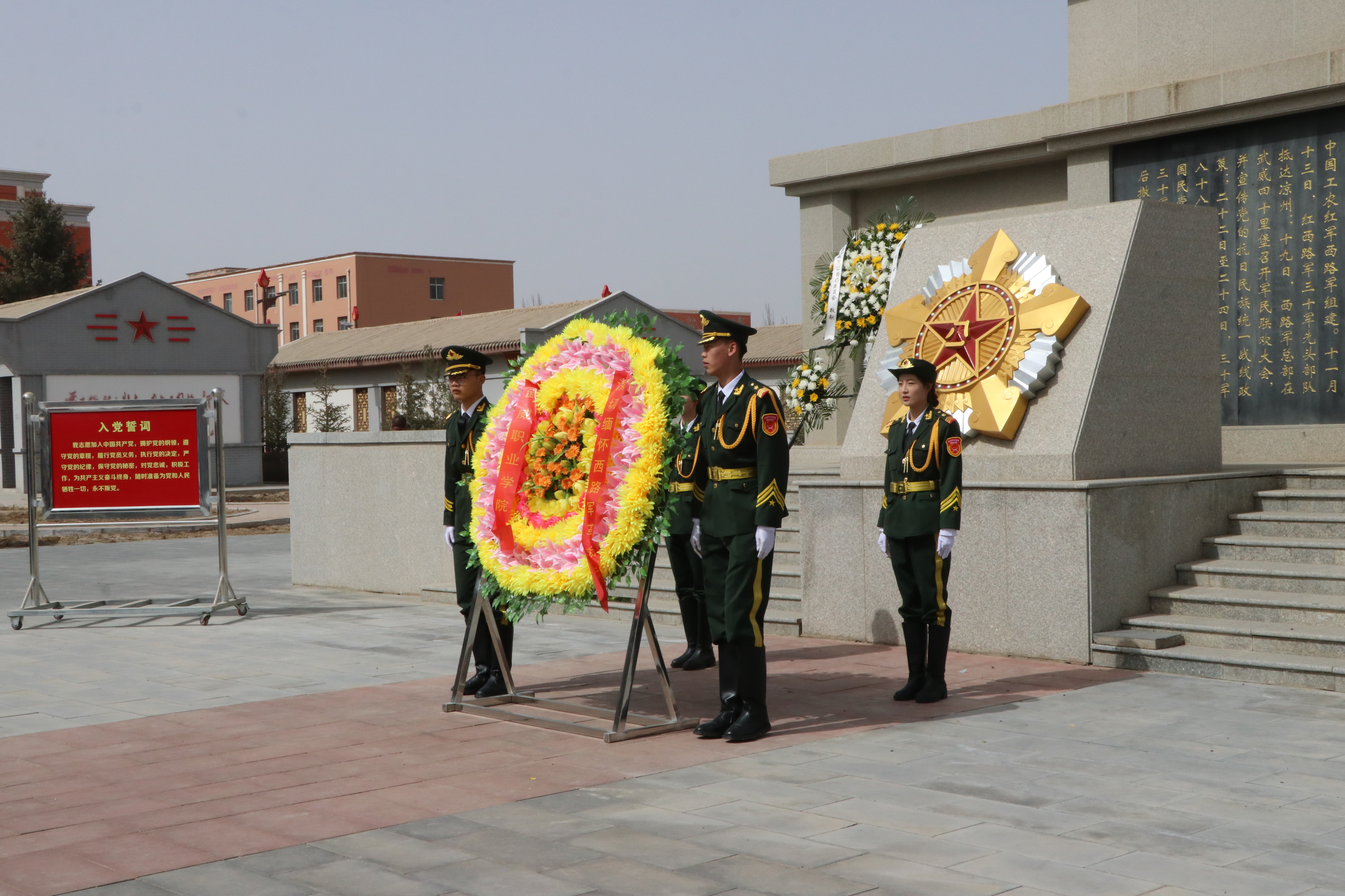 活動(dòng)當(dāng)天,同學(xué)們莊嚴(yán)肅立于烈士紀(jì)念碑前,通過(guò)敬獻(xiàn)花圈、集體默哀、黨員重溫入黨誓詞等方式寄托哀思。緬懷儀式結(jié)束后,在講解員帶領(lǐng)下,大家有序參觀(guān)涼州戰(zhàn)役紀(jì)念館,透過(guò)珍貴的歷史文物、生動(dòng)的影像資料和震撼的場(chǎng)景復(fù)原,深刻感悟革命先烈革命理想高于天的堅(jiān)定信仰和為有犧牲多壯志的英雄氣概。
