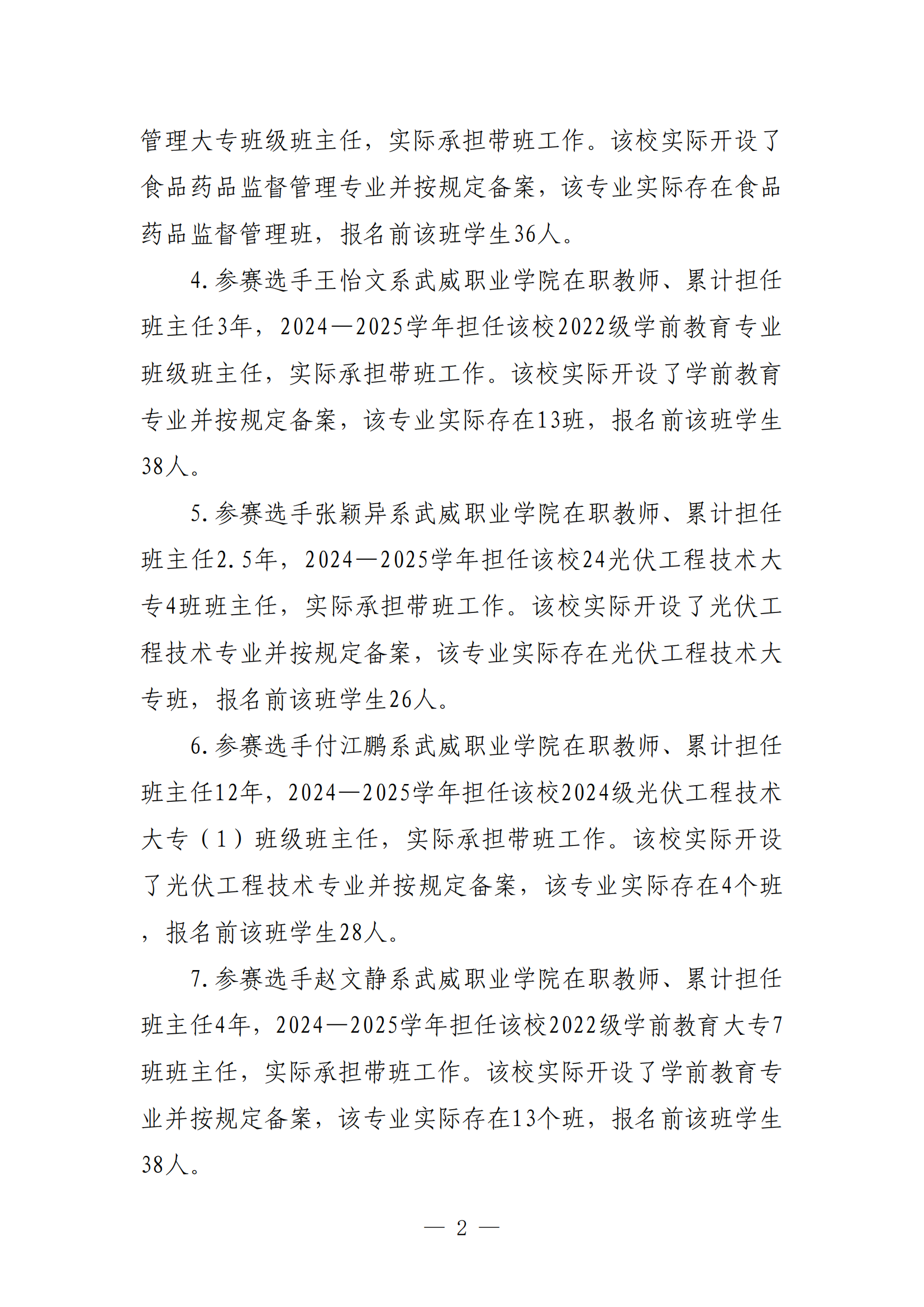 2025年全省職業(yè)院校技能大賽班主任能力比賽武威職業(yè)學(xué)院參賽選手信息公示