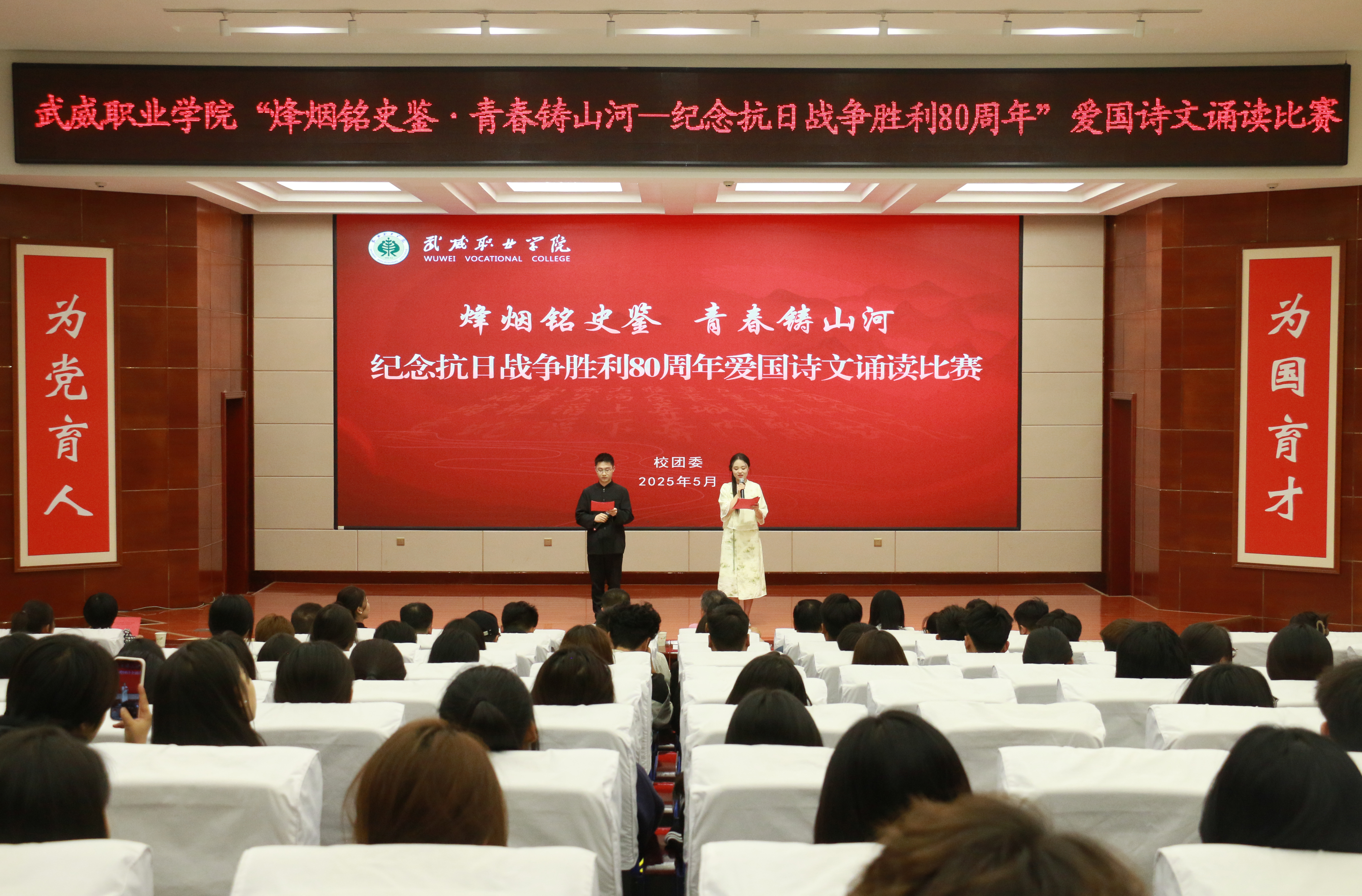 詩韻傳薪火,青春頌山河。5月22日晚,學?!胺闊熴懯疯b青春鑄山河—紀念中國人民抗日戰(zhàn)爭勝利80周年”愛國詩文誦讀比賽在菁英廳舉行。學校黨委委員、副校長何毅出席活動。二級學院團委書記及學生代表200余人觀看比賽。