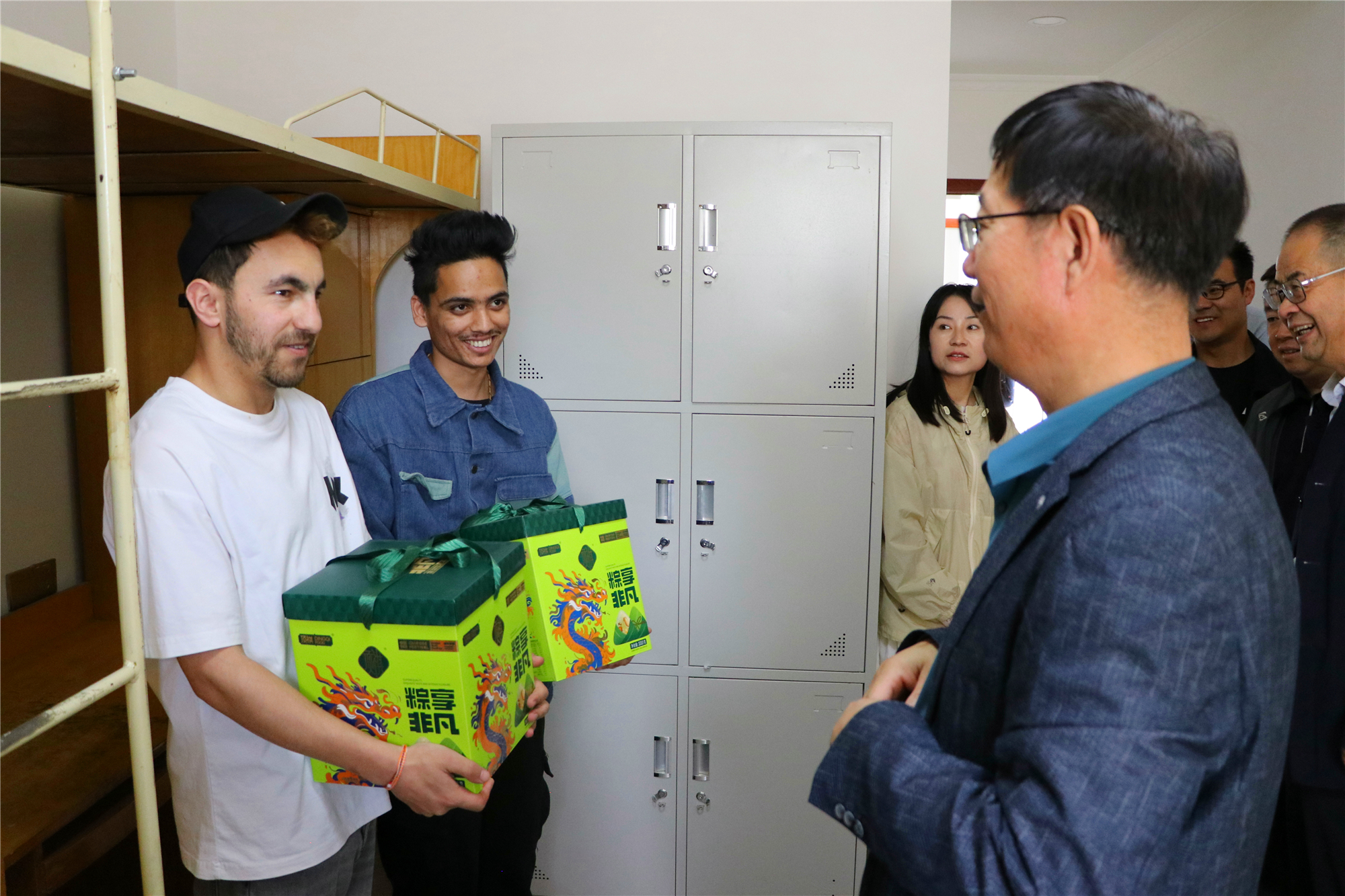 端午將至,為更好開展留學(xué)生教育管理工作,使我校來華留學(xué)生更好地認(rèn)識(shí)和體驗(yàn)中國(guó)傳統(tǒng)節(jié)日文化,5月30日,學(xué)校黨委副書記、副校長(zhǎng)張開禮,黨委副書記翟存祥,黨委委員、副校長(zhǎng)王守云一行與國(guó)際合作交流處全體工作人員走進(jìn)留學(xué)生公寓,給留學(xué)生們送去節(jié)日的關(guān)懷和溫暖。