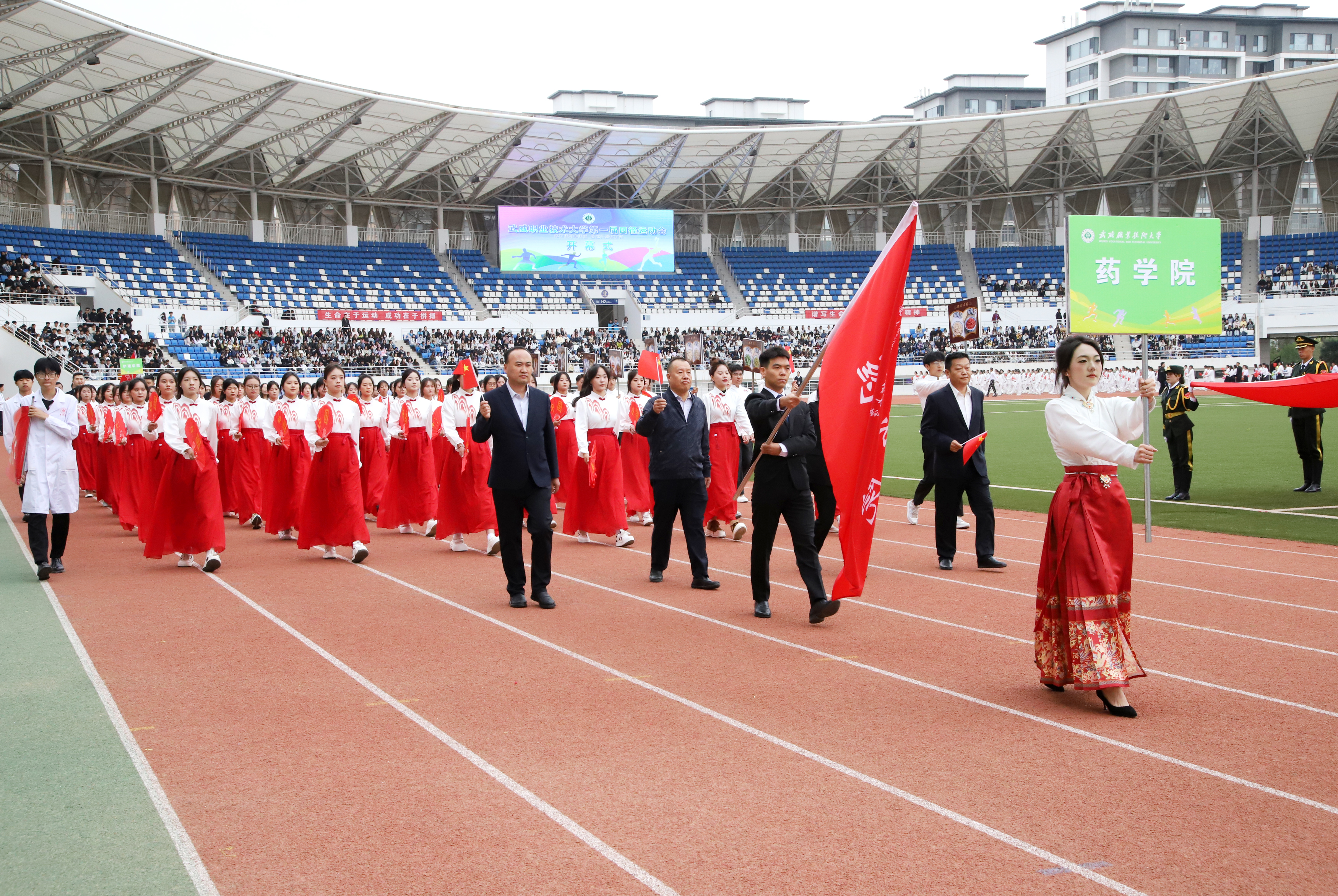 伴隨著激昂的《運(yùn)動(dòng)員進(jìn)行曲》,國旗護(hù)衛(wèi)隊(duì)、彩旗隊(duì)、裁判員隊(duì)伍、各學(xué)院方陣依次入場,隊(duì)列步伐整齊有力,口號(hào)堅(jiān)定嘹亮,充分展示了師生良好的精神風(fēng)貌。