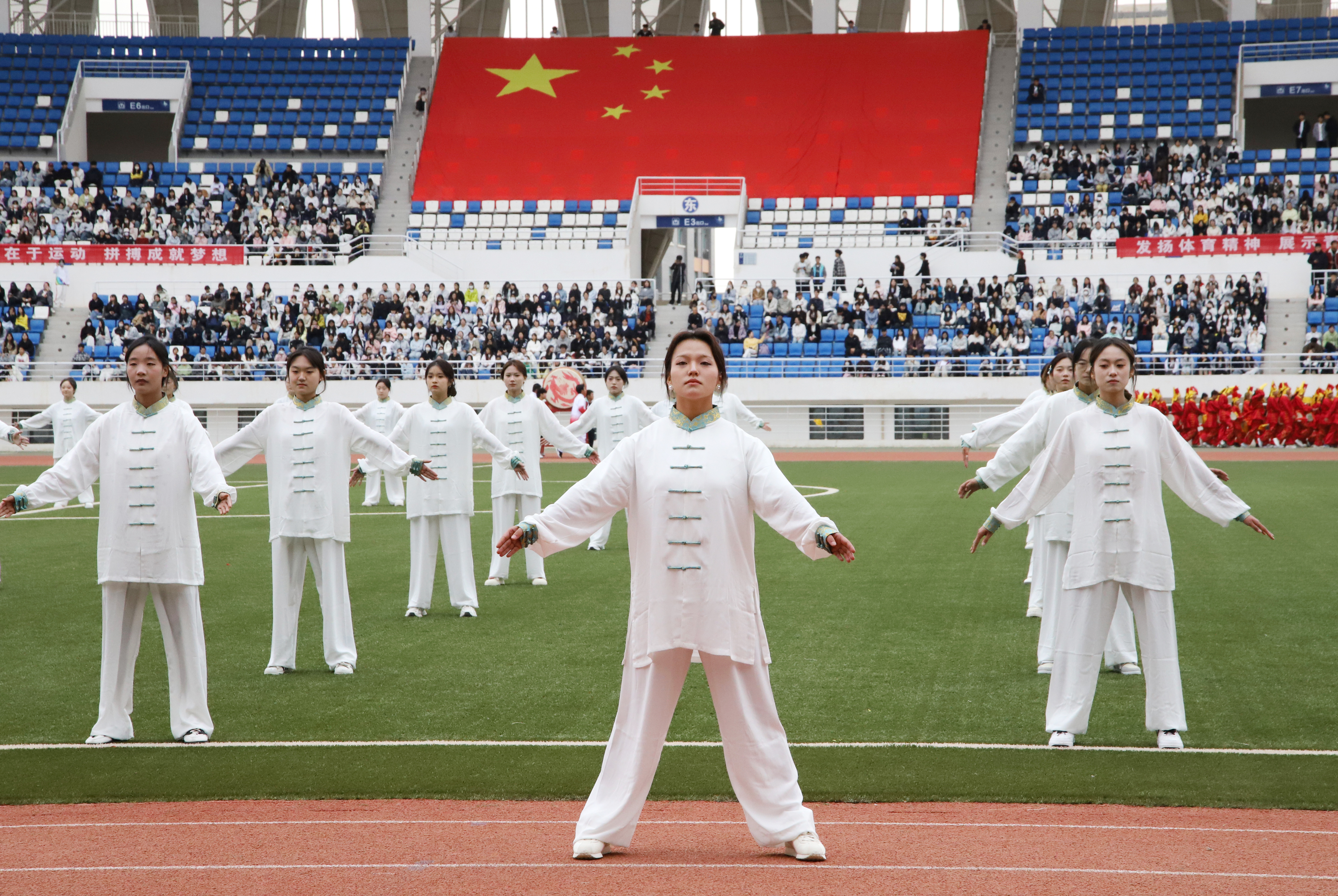 體育教學(xué)成果展示將開幕式氣氛推向高潮。國家級(jí)非物質(zhì)文化遺產(chǎn)涼州攻鼓子,鼓聲鏗鏘有力,動(dòng)作整齊劃一,將傳統(tǒng)文化的厚重與激情展現(xiàn)得淋漓盡致;八段錦表演動(dòng)作舒展柔和,一招一式如行云流水,盡顯中華傳統(tǒng)養(yǎng)生文化的優(yōu)雅與寧靜;韻律操步伐輕盈、動(dòng)作有力,展現(xiàn)了武職大學(xué)子陽光向上、朝氣蓬勃的精神面貌。最后,藝術(shù)與教育學(xué)院老師們獻(xiàn)上男女四重唱《美麗中國》,悠揚(yáng)歌聲里滿含對(duì)祖國的贊美,引發(fā)全場共鳴。