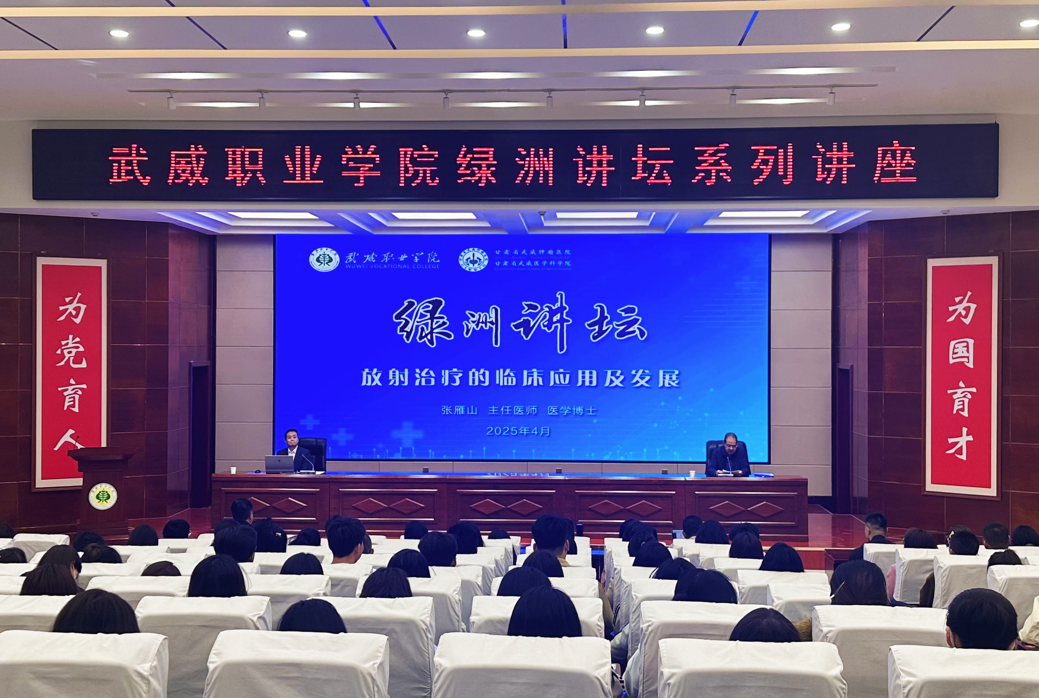 4月17日,學(xué)校特邀甘肅省武威腫瘤醫(yī)院副院長、重離子中心主任張雁山博士,在菁英廳作了“放射治療臨床應(yīng)用及發(fā)展”專題講座。學(xué)校黨委副書記翟存祥主持講座,醫(yī)學(xué)技術(shù)學(xué)院、藥學(xué)院、護(hù)理學(xué)院教師,2024級(jí)放射治療技術(shù)專業(yè)學(xué)生共210余人聆聽了講座。