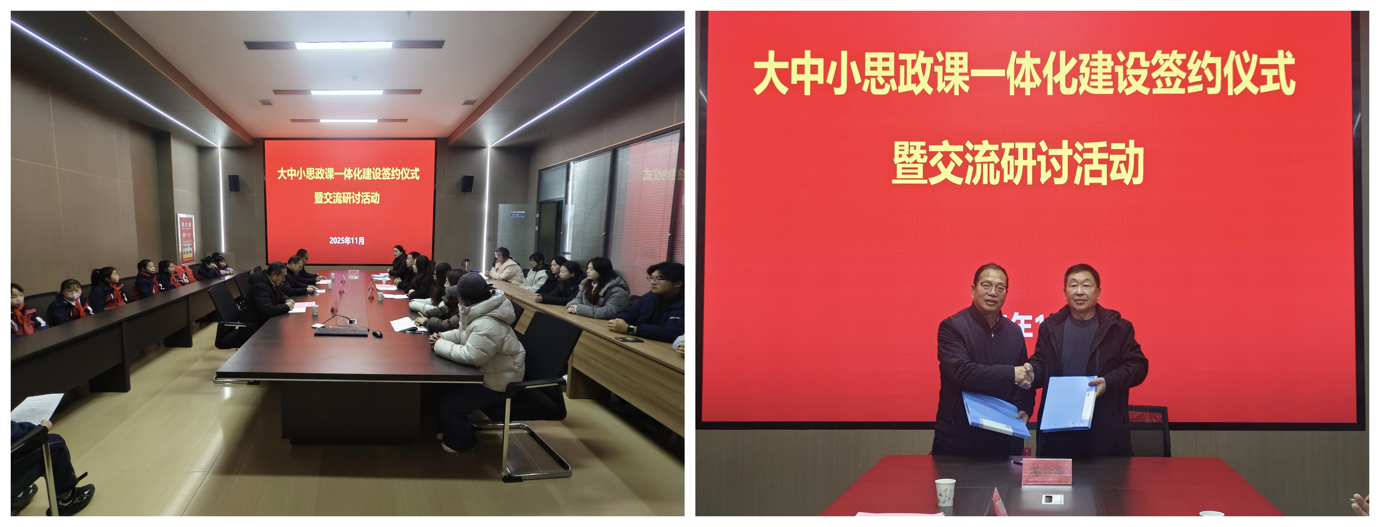 簽約儀式上,劉心和徐主年分別致辭,雙方共同簽署了《大中小學(xué)思政課一體化共建協(xié)議書》,并圍繞共建目標(biāo)、合作內(nèi)容與實(shí)施機(jī)制進(jìn)行了深入交流。此次合作簽約為院校雙方搭建了資源共享、優(yōu)勢互補(bǔ)、協(xié)同育人的平臺,希望雙方在師資隊(duì)伍共建、實(shí)踐資源共享、課程創(chuàng)新突破等方面多維度協(xié)同推進(jìn),不斷探索一體化建設(shè)的長效機(jī)制,打破各學(xué)段在課程、資源、師資等方面的壁壘,實(shí)現(xiàn)有機(jī)銜接,促進(jìn)優(yōu)質(zhì)教學(xué)經(jīng)驗(yàn)互鑒、特色教學(xué)模式推廣,共同提升立德樹人效果。