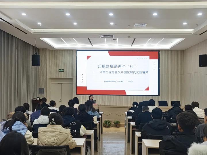 教學(xué)觀摩活動(dòng)以“歸根到底是兩個(gè)行——開辟馬克思主義中國(guó)化時(shí)代化新境界”為題,從“真理之光:馬克思主義行”“實(shí)踐之行:中國(guó)化時(shí)代化的馬克思主義行”“復(fù)興之路:不斷開辟馬克思主義中國(guó)化時(shí)代化新境界”三部分展開講述,她從“兩個(gè)行”這一重大論斷的理論溯源、時(shí)代背景與核心要義切入,結(jié)合新時(shí)代以來(lái)的偉大實(shí)踐與歷史性變革,深刻揭示了中國(guó)共產(chǎn)黨為什么能、中國(guó)特色社會(huì)主義為什么好的理論邏輯與實(shí)踐密碼,生動(dòng)回答中國(guó)之問、世界之問、人民之問、時(shí)代之問,實(shí)現(xiàn)了馬克思主義中國(guó)化時(shí)代化新的飛躍。她強(qiáng)調(diào),“兩個(gè)行”是相互貫通、有機(jī)統(tǒng)一的整體,開辟馬克思主義中國(guó)化時(shí)代化新境界,必須始終堅(jiān)持“兩個(gè)行”的根本遵循,在實(shí)踐中不斷推進(jìn)理論創(chuàng)新,并用發(fā)展著的理論指導(dǎo)新的實(shí)踐。