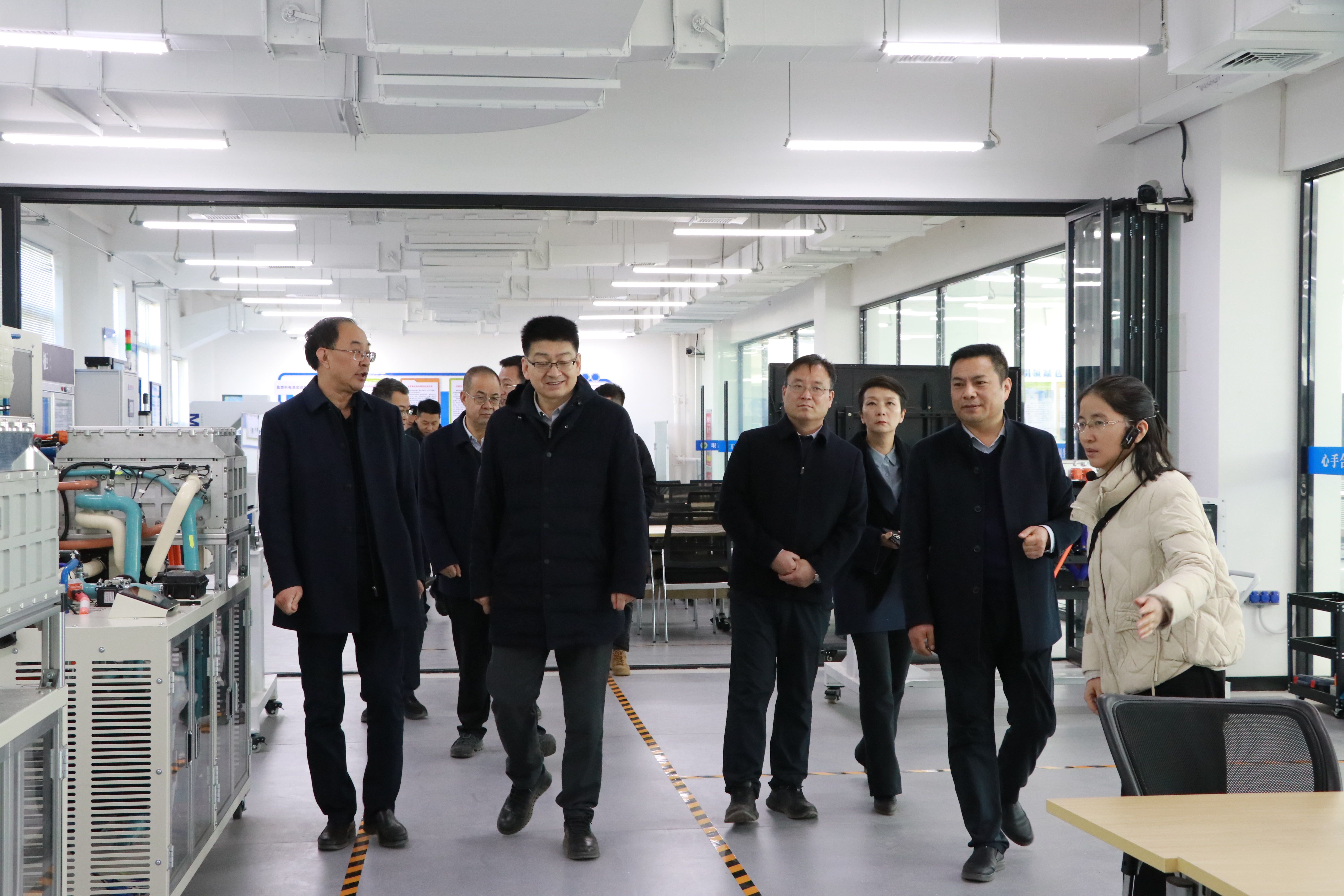 韓高年一行先后考察參觀了學(xué)校新能源科技館、現(xiàn)代農(nóng)業(yè)生產(chǎn)實訓(xùn)基地、智能制造實訓(xùn)中心、應(yīng)急管理產(chǎn)業(yè)學(xué)院等校內(nèi)實訓(xùn)場地,詳細了解學(xué)校專業(yè)建設(shè)發(fā)展情況。韓高年充分肯定了我校辦學(xué)成效,并對我校成功升格本科層次職業(yè)學(xué)校表示祝賀,分享了蘭州城市學(xué)院在本科專業(yè)綜合改革與科研平臺建設(shè)方面的寶貴經(jīng)驗。他希望以此為契機,開啟兩校多領(lǐng)域、深層次的交流合作新篇章。