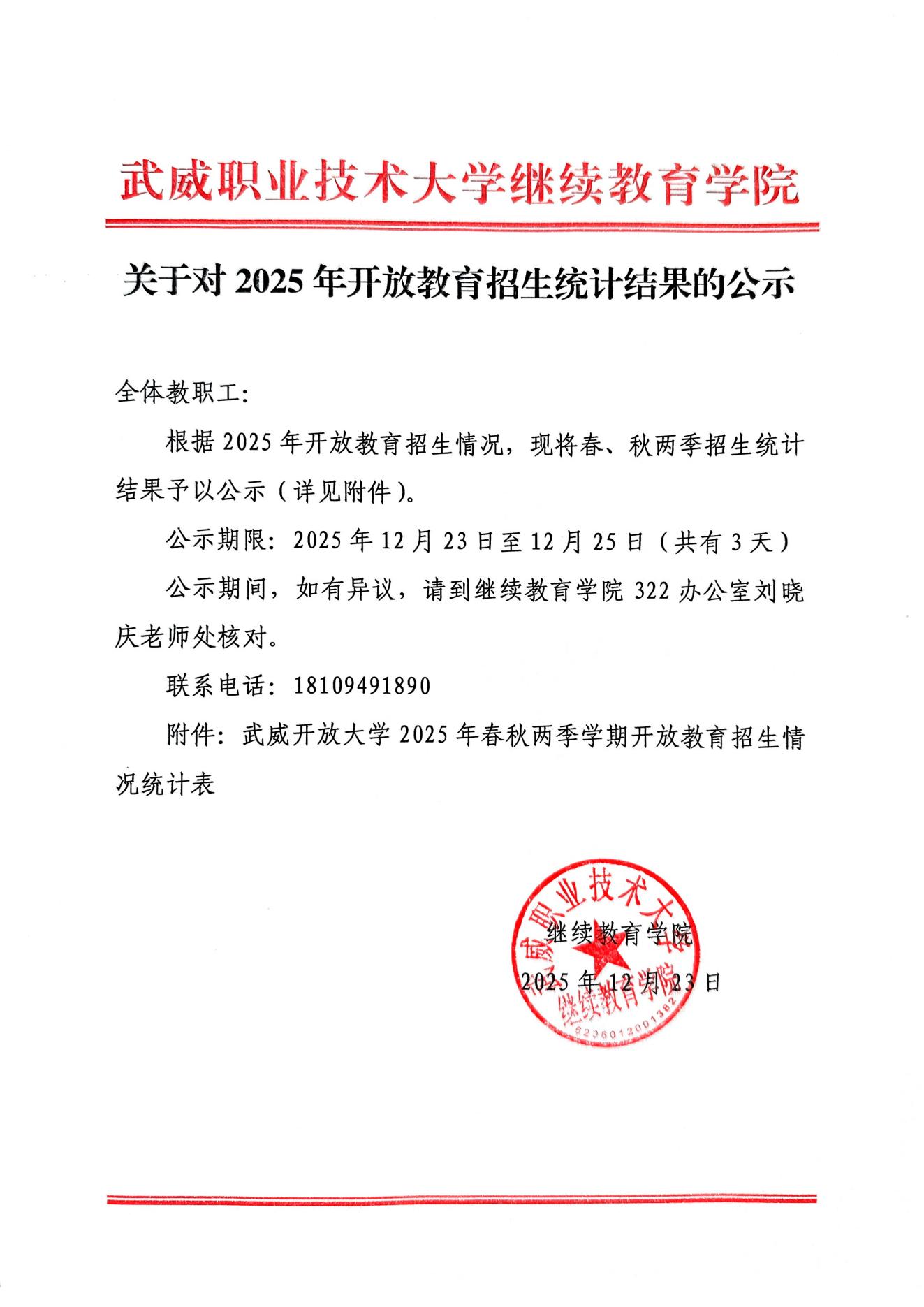 關(guān)于對(duì)2025年開(kāi)放教育招生統(tǒng)計(jì)結(jié)果的公示