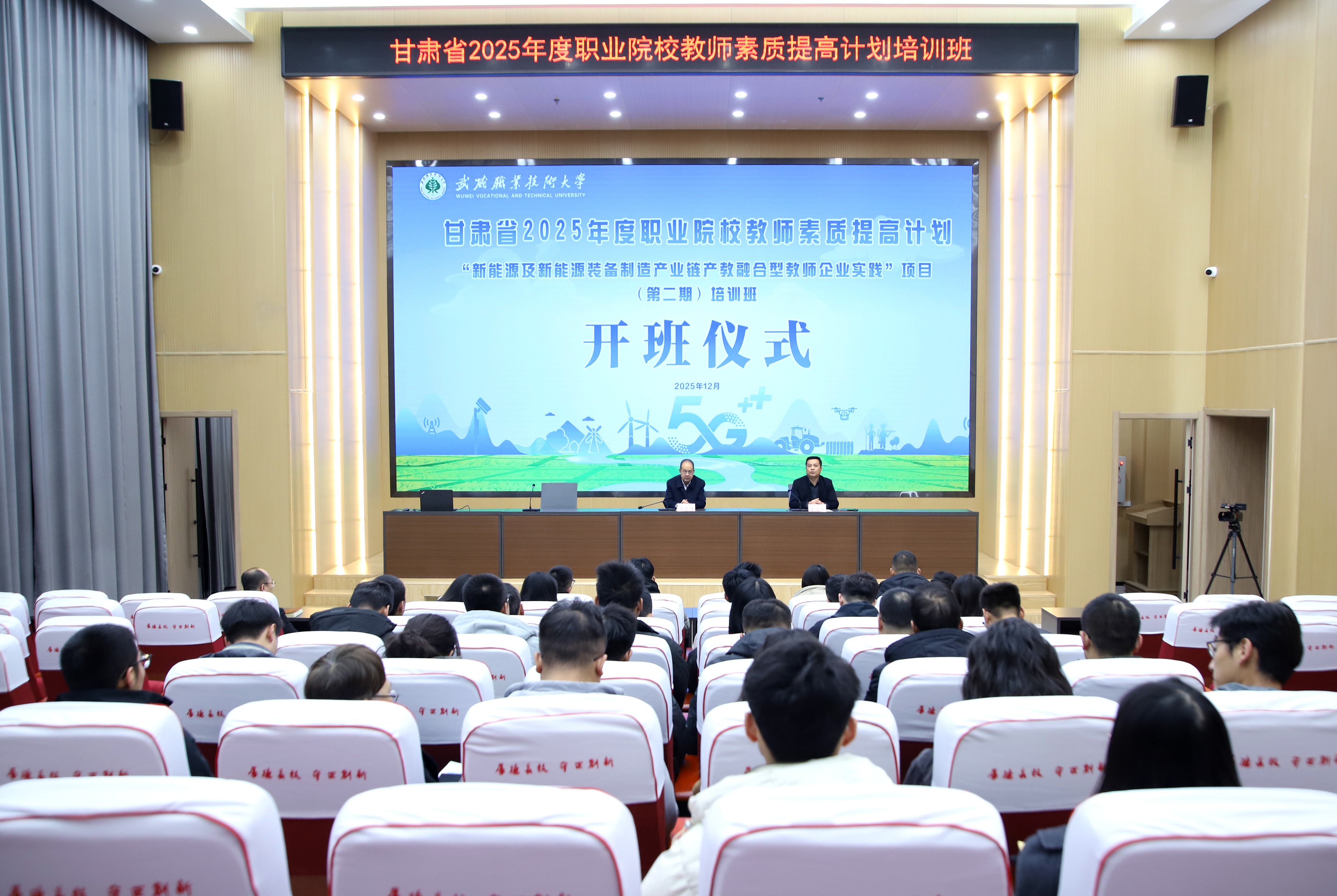 12月1日,由甘肅省教育廳主辦、武威職業(yè)技術(shù)大學(xué)承辦的甘肅省2025年度職業(yè)院校教師素質(zhì)提高計(jì)劃“新能源及新能源裝備制造產(chǎn)業(yè)鏈產(chǎn)教融合型教師企業(yè)實(shí)踐”項(xiàng)目第二期培訓(xùn)班正式啟動,本次參訓(xùn)學(xué)員共計(jì)28人。會議由中科低碳新能源技術(shù)學(xué)院院長黃述杰主持。