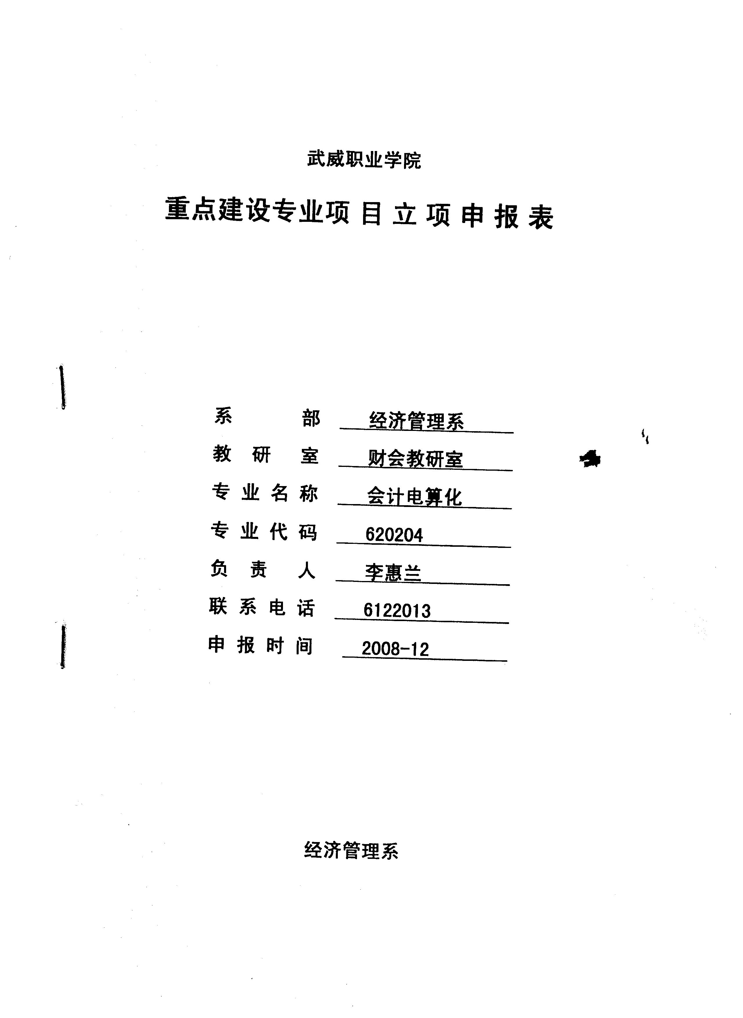 院級重點(diǎn)專業(yè)——會計(jì)專業(yè)申報(bào)表