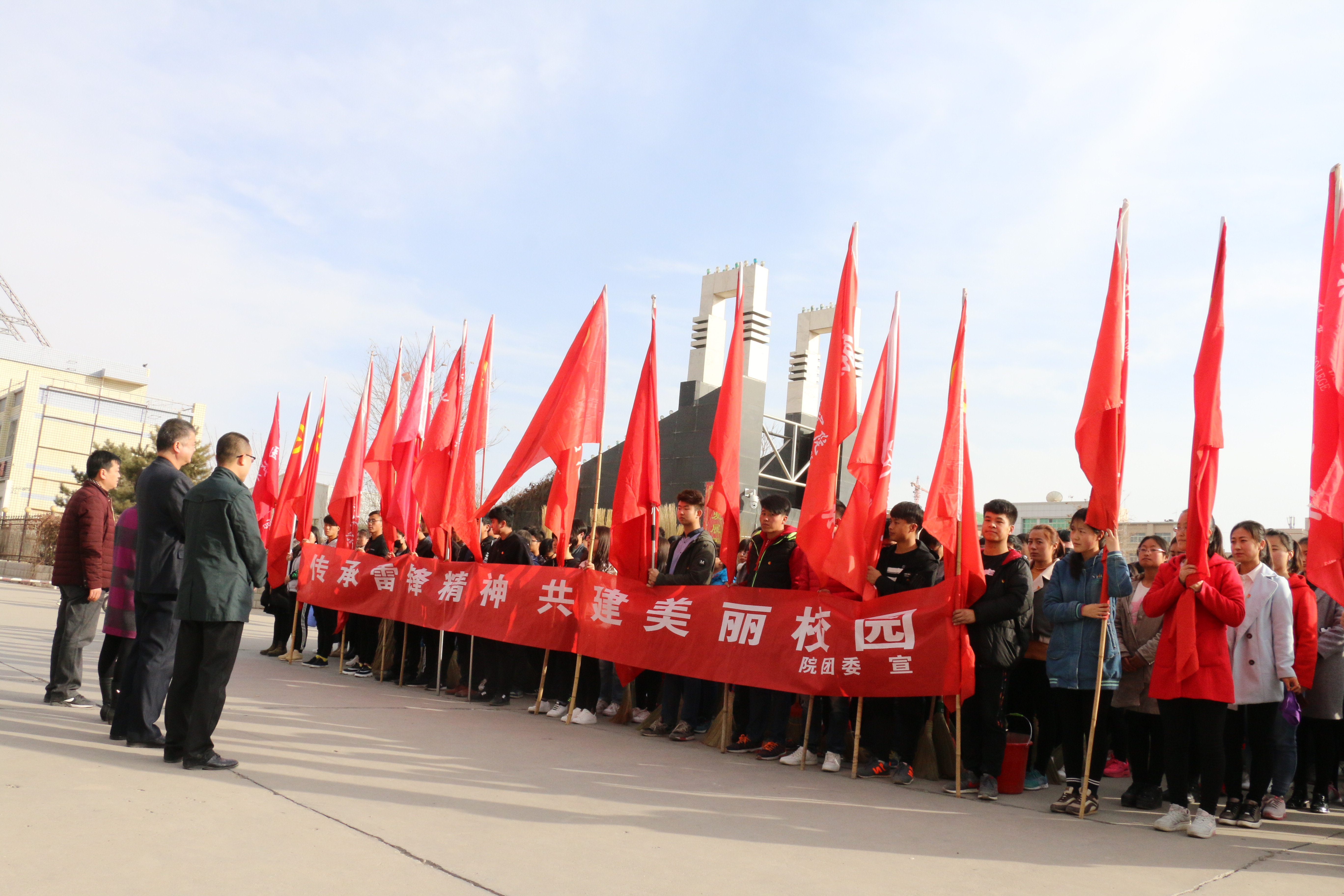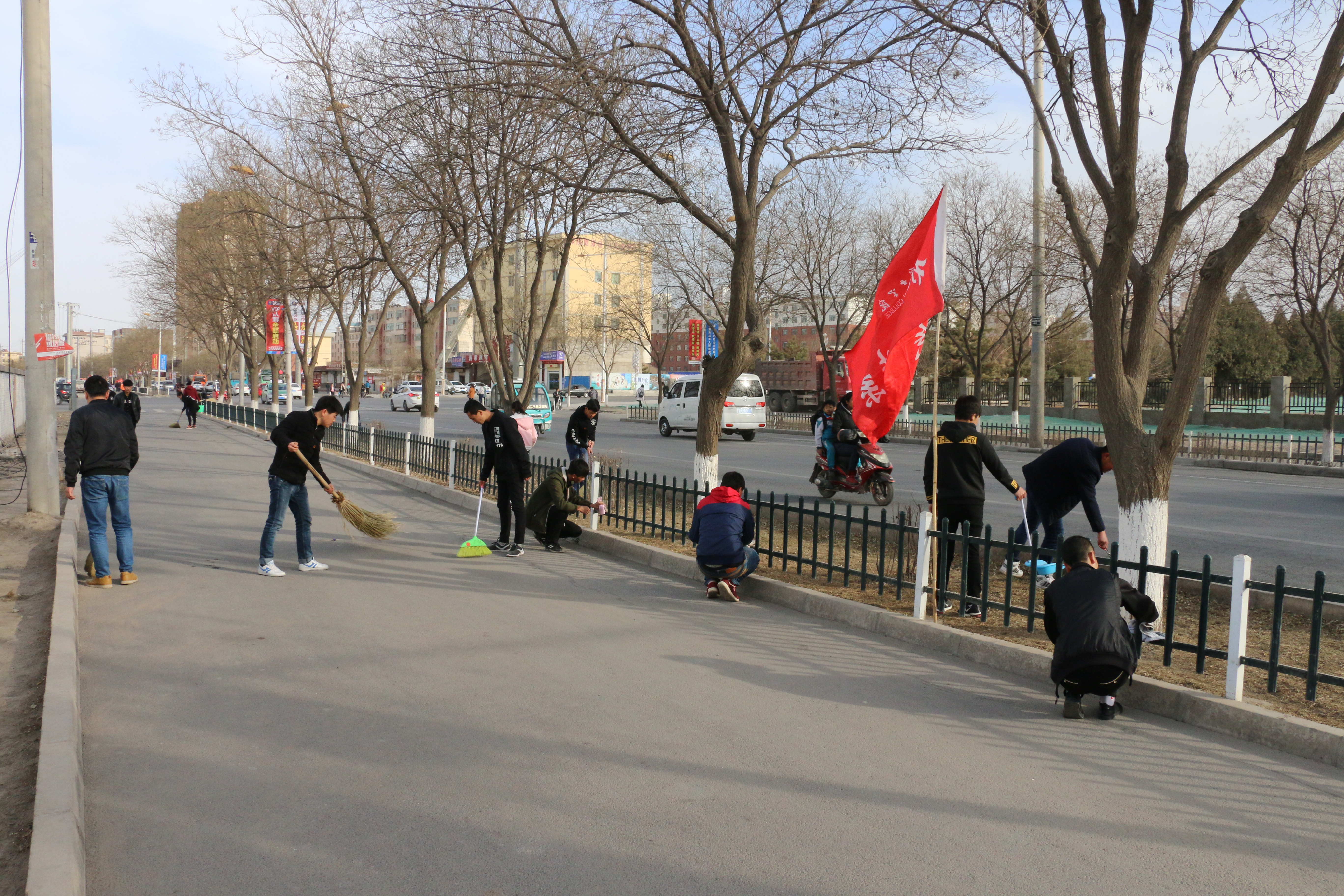 3月3日下午,現(xiàn)代農(nóng)業(yè)技術(shù)系50名志愿者在武威市文化廣場(chǎng)參加了全市志愿者集中服務(wù)日活動(dòng);學(xué)院327名青年志愿者清掃了周邊街道衛(wèi)生,集中清潔道路兩邊的柵欄、公交車站,清除小廣告,凈化了城市衛(wèi)生和生活環(huán)境。