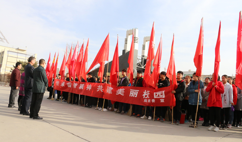 為進(jìn)一步學(xué)習(xí)和弘揚(yáng)雷鋒精神,倡導(dǎo)時(shí)代新風(fēng)正氣,引導(dǎo)廣大青年學(xué)生培育和踐行社會(huì)主義核心價(jià)值觀,院團(tuán)委聯(lián)合學(xué)生工作處積極開(kāi)展“傳承雷鋒精神 共建美麗校園”志愿服務(wù)活動(dòng)。
