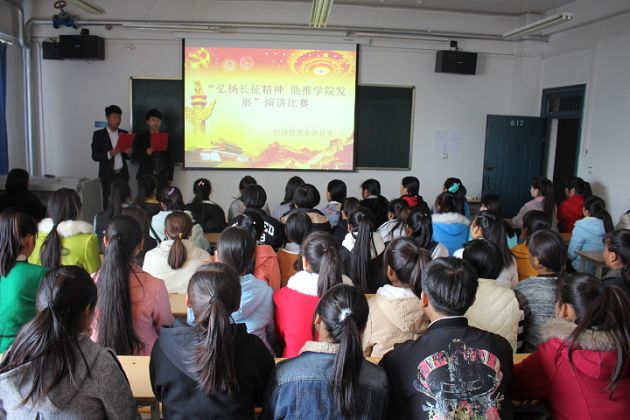 10月25日、26日組織學(xué)生觀看大型紀錄片《長征》,通過了解紅軍長征勝利的歷史故事,體會紅軍長征精神,抒發(fā)對革命先烈的敬仰之情,在感人的故事中回顧革命歷史,感恩幸福生活。10月31日晚,在博學(xué)樓612舉行了以“弘揚長征精神、助推學(xué)院發(fā)展”為主題的演講比賽。通過不同形式的活動,號召同學(xué)們弘揚長征精神,從小做起,從一點一滴做起,為中華民族的復(fù)興而努力學(xué)習(xí),讓紅軍精神在莘莘學(xué)子中傳承。