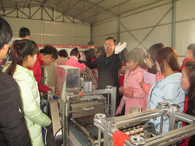 合作社劉經理和張經理帶領學生參觀了自動化育苗生產車間、育苗大棚、品種生長勢比較試驗大棚等。參觀過程中,劉經理向學生詳細介紹了自動點播機的組成、各部分的功能和效率;張經理向學生介紹了大棚內的自動化灌溉設施、引進的蔬菜新品種、溫室管理新技術等。
