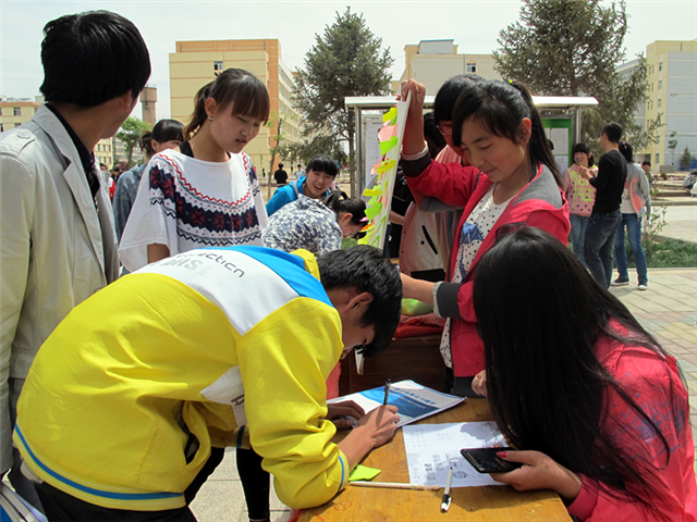 我系青年志愿者在校園設(shè)立了固定宣傳位,設(shè)計(jì)制作了展板,開(kāi)展了“讓我們一起光盤(pán)吧”簽字征集活動(dòng),并在食堂餐桌上張貼光盤(pán)行動(dòng)的小便簽,與前來(lái)就餐的同學(xué)互動(dòng)。此外,志愿者還利用網(wǎng)絡(luò)社交平臺(tái)、微博、微信等新媒體進(jìn)行宣傳,深化了青年志愿者精神、踐行了文明新風(fēng)、收到了良好的效果,。