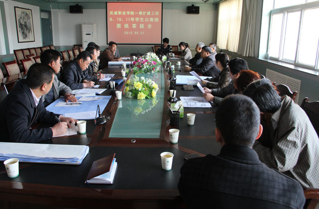 2013年3月27日上午,在二號(hào)教學(xué)樓會(huì)議室召開9、10、11號(hào)學(xué)生公寓樓圖紙答疑會(huì)。設(shè)計(jì)單位清華大學(xué)建筑設(shè)計(jì)研究院,施工投標(biāo)單位甘肅省第三建筑公司,甘肅省第四建筑公司,武威高壩建筑公司以及學(xué)院相關(guān)人員參加了會(huì)議。會(huì)議由副院長(zhǎng)趙明主持。