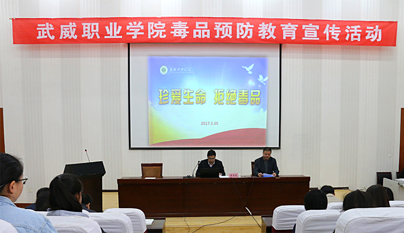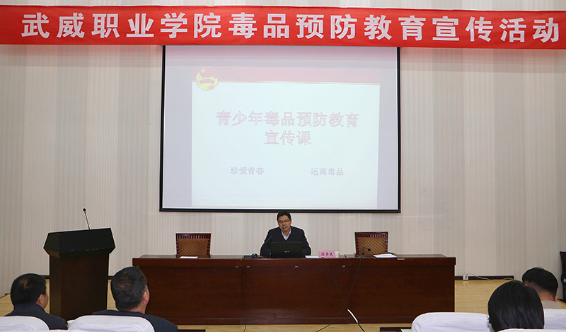 3月30日下午,院團委聯(lián)合學生工作處、保衛(wèi)處在正德廳舉辦武威職業(yè)學院毒品預防教育宣傳活動,團市委書記潘多民出席活動并授課,學院各級團干部270多人參加了活動?;顒佑蓪W生工作處處長王守云主持。