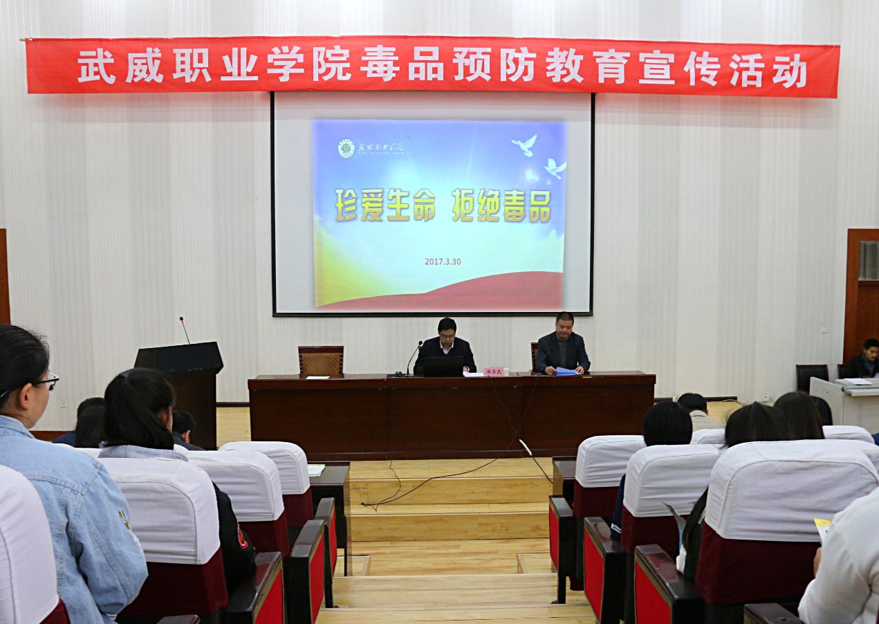 3月30日下午,院團(tuán)委聯(lián)合學(xué)生工作處、保衛(wèi)處在正德廳舉辦武威職業(yè)學(xué)院毒品預(yù)防教育宣傳活動(dòng),團(tuán)市委書記潘多民出席活動(dòng)并授課,學(xué)院各級(jí)團(tuán)干部270多人參加了活動(dòng)。活動(dòng)由學(xué)生工作處處長(zhǎng)王守云主持。
