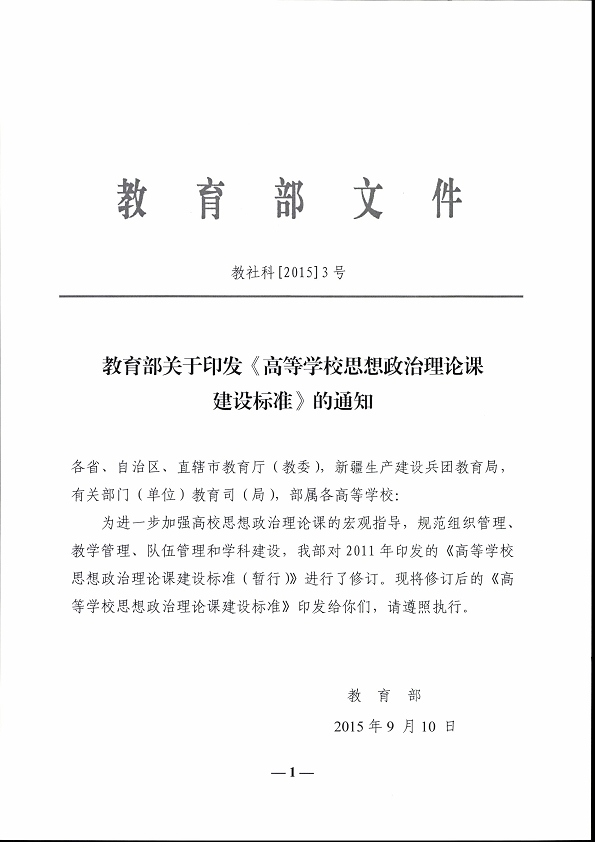 關于印發(fā)《高等學校思想政治理論課建設標準》的通知