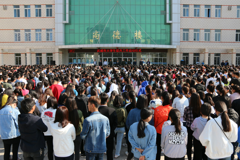 5月15日下午,武威市大學生征兵工作啟動儀式在學院尚德樓北廣場隆重舉行。武威市政府副市長胡細如和武威軍分區(qū)司令員萬發(fā)中出席啟動儀式并做了講話,武威軍分區(qū)政委周小平、參謀長孫武奇,市委宣傳部副部長陳萬能,涼州區(qū)委常委、常務副區(qū)長高加志,市教育局督學張應偉、市民政局雙擁辦副主任楊光鈺、市公安局副調(diào)研員陳振亞出席啟動儀式。武威日報社、廣播電視臺的媒體朋友和我院1000多名師生代表參加啟動儀式,學院副院長王永緒主持啟動儀式。