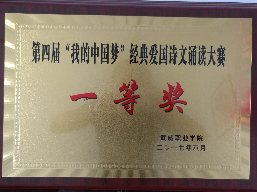 為進(jìn)一步推進(jìn)優(yōu)質(zhì)校建設(shè),加強(qiáng)學(xué)生思想素質(zhì)修養(yǎng),豐富學(xué)生課余文化生活,提高學(xué)生精神文明建設(shè),我系選派由15學(xué)10曹智娟,李濤濤,15學(xué)4王菲,16動(dòng)漫林露組成的參賽隊(duì)參加武威職業(yè)學(xué)院第四屆愛國(guó)詩(shī)文朗誦比賽決賽,比賽在學(xué)院正德廳舉行,我系參賽作品《她在云中笑》榮獲決賽一等獎(jiǎng)。同時(shí),對(duì)推進(jìn)學(xué)院優(yōu)質(zhì)校建設(shè)做出更大的努力。