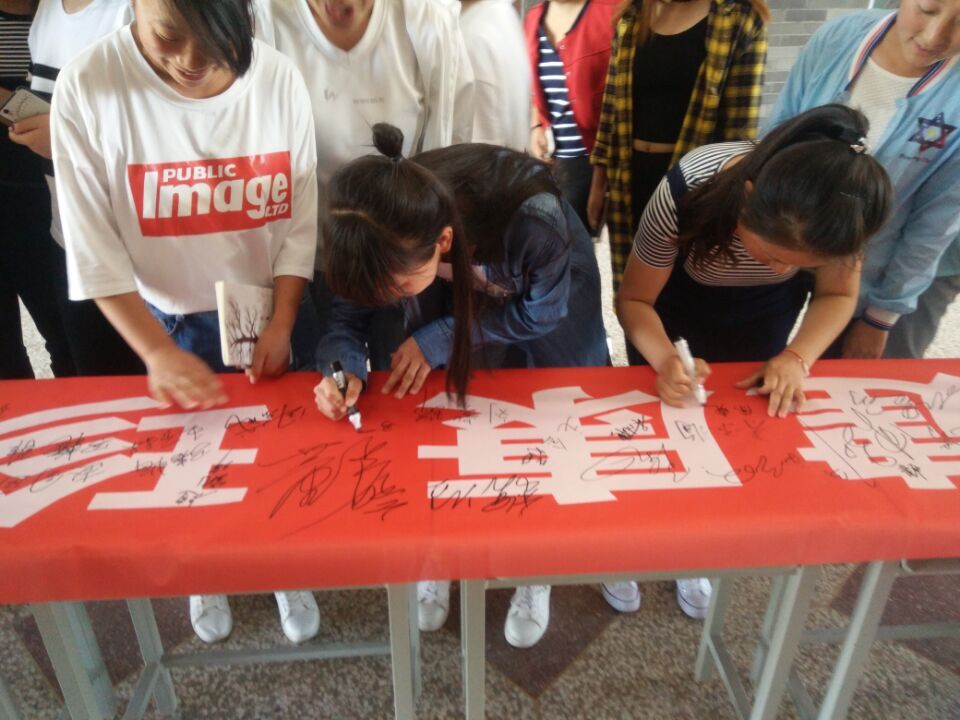 5月22日 ,系團學會制作橫幅標語“關(guān)注健康、珍愛生命”,召集簽名活動。
