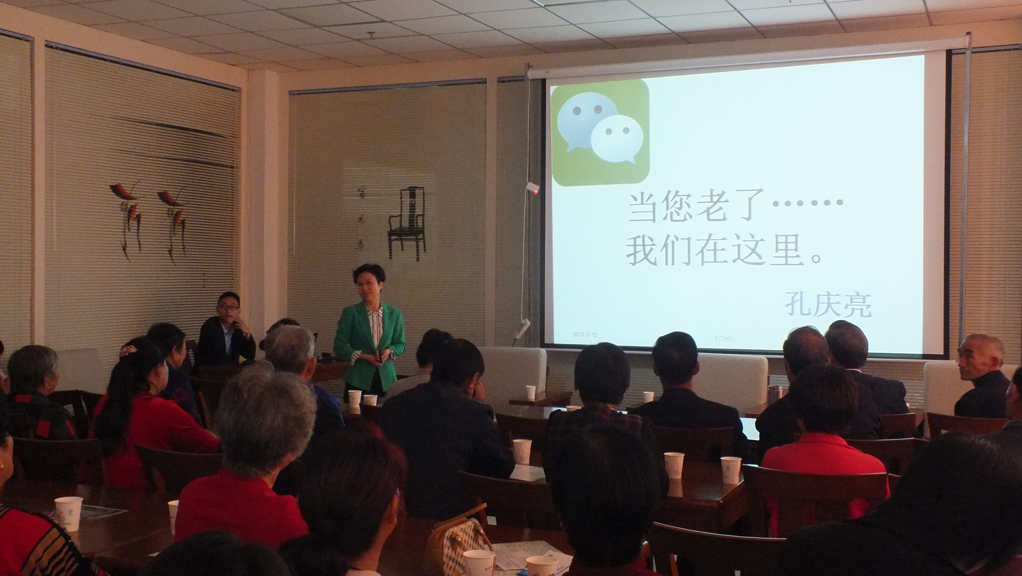 阿爾茨海默病又稱老年癡呆癥、失智癥,是因大腦進(jìn)行性的退化,導(dǎo)致記憶力減退,同時(shí)伴隨認(rèn)知功能損害的一類疾病。目前在中國(guó),阿爾茨海默病患者人數(shù)已居世界第一,同時(shí)也是全球增速最快的國(guó)家和地區(qū)之一,以每年平均30萬的新發(fā)病例增長(zhǎng)。護(hù)理系副教授孔慶亮以“當(dāng)您老了,我們?cè)谶@里”為題,給現(xiàn)場(chǎng)與會(huì)的老人們與養(yǎng)老中心護(hù)理工作人員介紹了我國(guó)關(guān)于老年人養(yǎng)老服務(wù)體系及現(xiàn)狀,分享了老年人心理健康、生活保健、疾病預(yù)防等方面的相關(guān)知識(shí),為老年人預(yù)防阿爾茨海默病起到了一定的幫助。