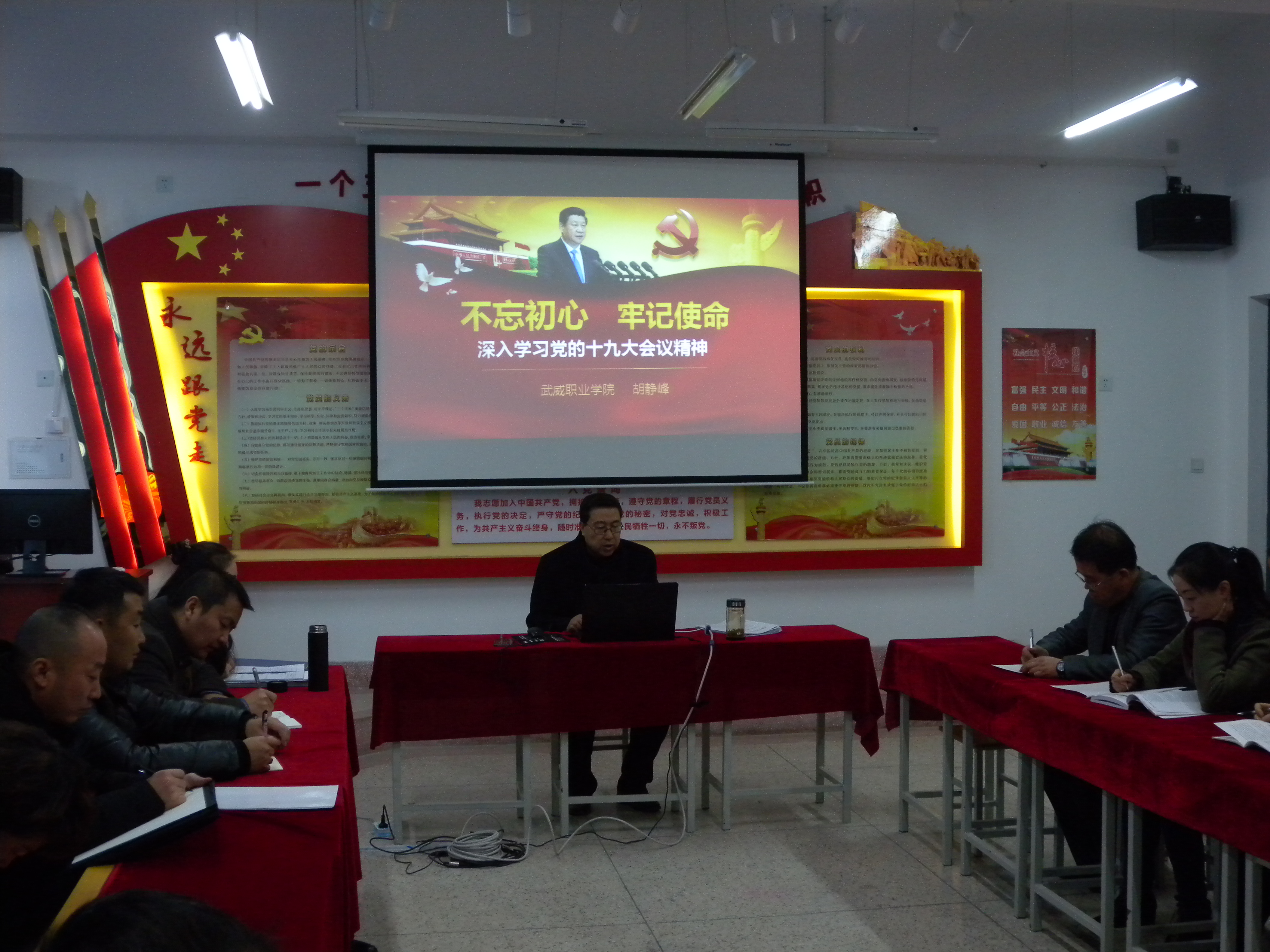 為深入學習黨的十九大會議精神,人文藝術教育系黨總支于2017年11月28日下午在勵勤樓209黨員活動室開展了書記講黨課活動。黨課由胡靜峰同志主講,題目為《不忘初心 牢記使命--深入學習黨的十九大會議精神》,全體黨員參加了此次活動。