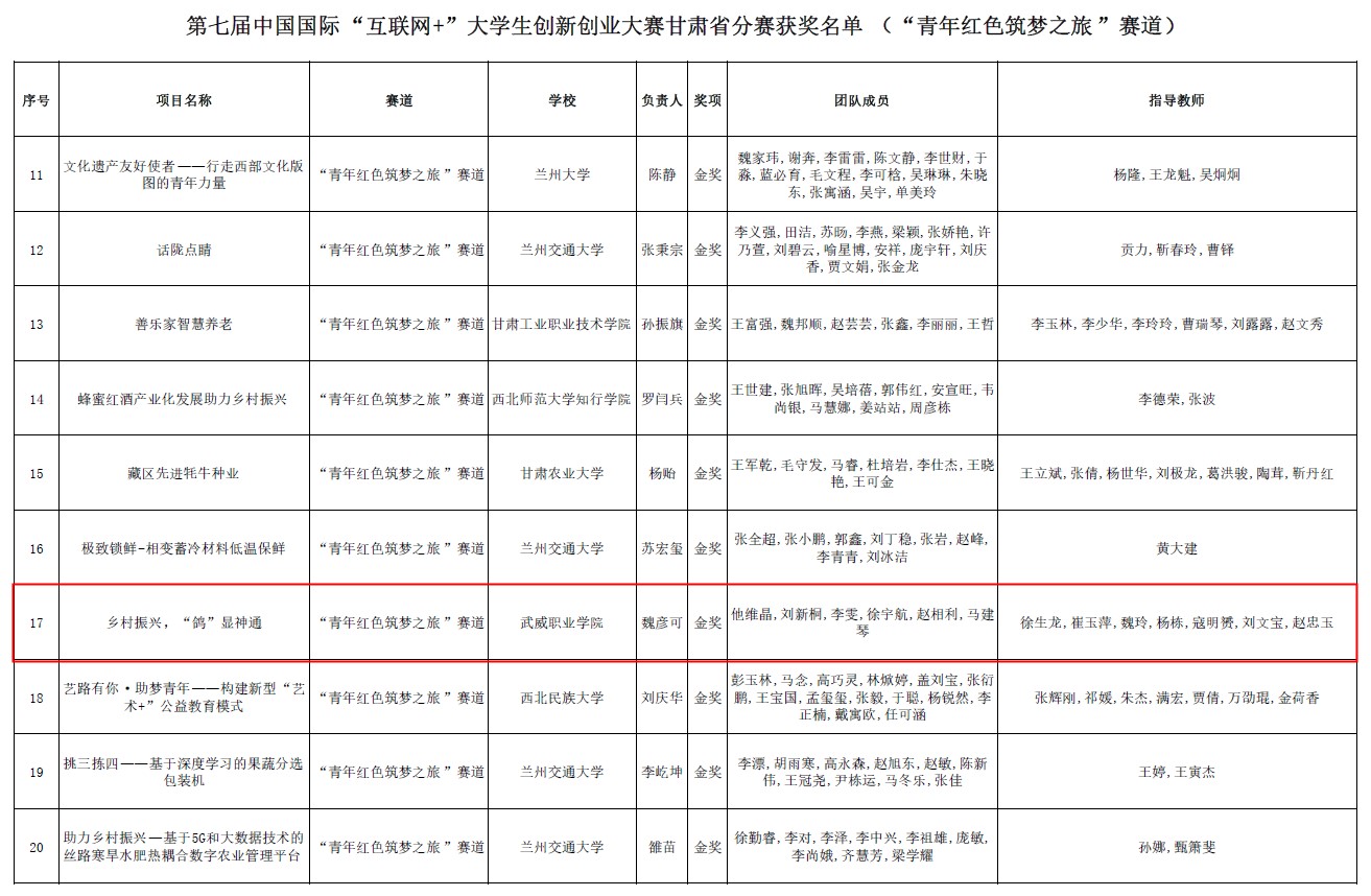 第七屆中國國際“互聯(lián)網(wǎng)+”大學(xué)生創(chuàng)新創(chuàng)業(yè)大賽甘肅省分賽“青年紅色筑夢之旅”賽道《鄉(xiāng)村振興,“鴿”顯神通》