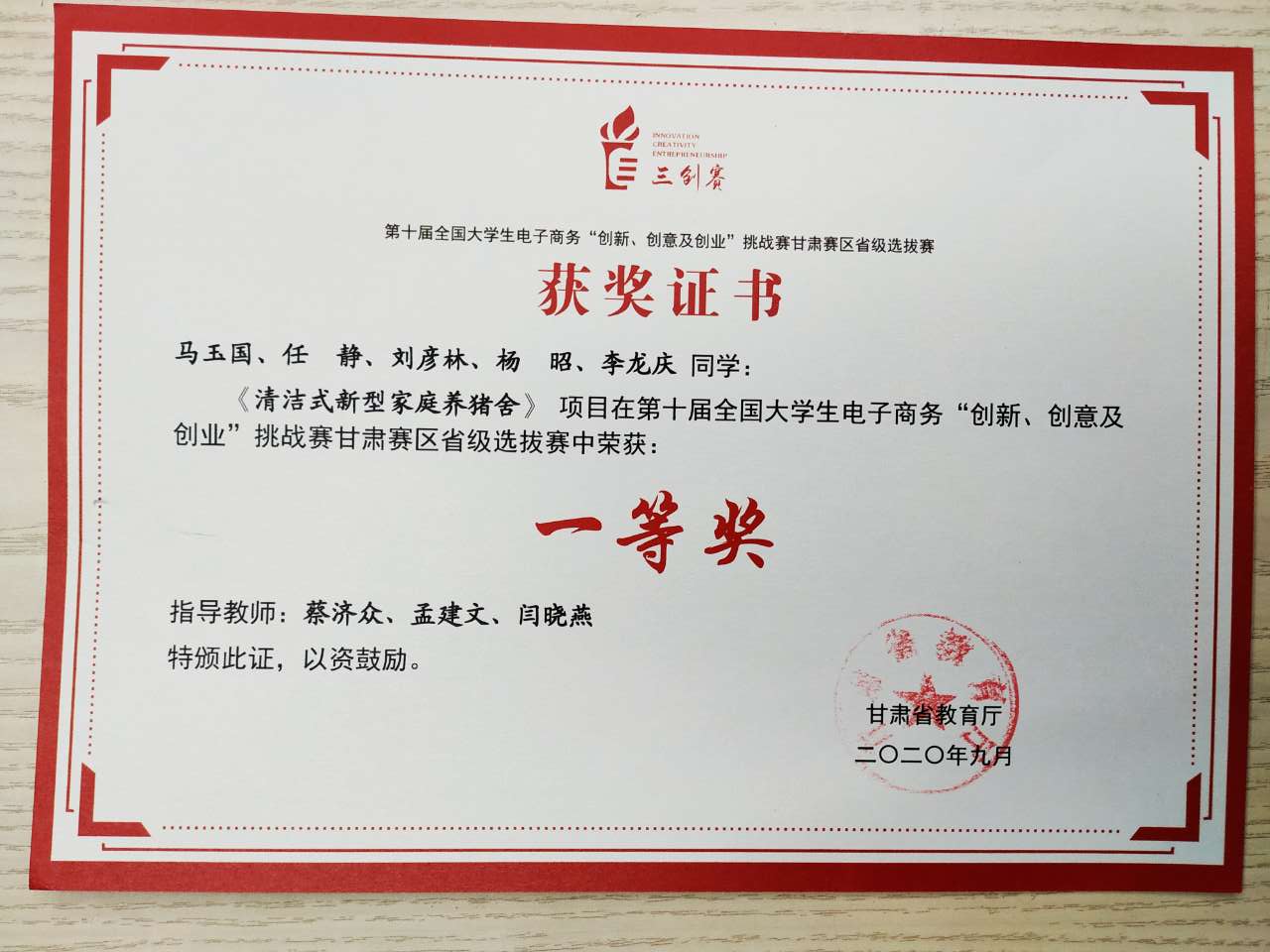第十屆全國大學(xué)生電子商務(wù)“創(chuàng)新、創(chuàng)意及創(chuàng)業(yè)挑戰(zhàn)賽甘肅省賽區(qū)省級選拔賽《清潔式新型家庭養(yǎng)豬舍》