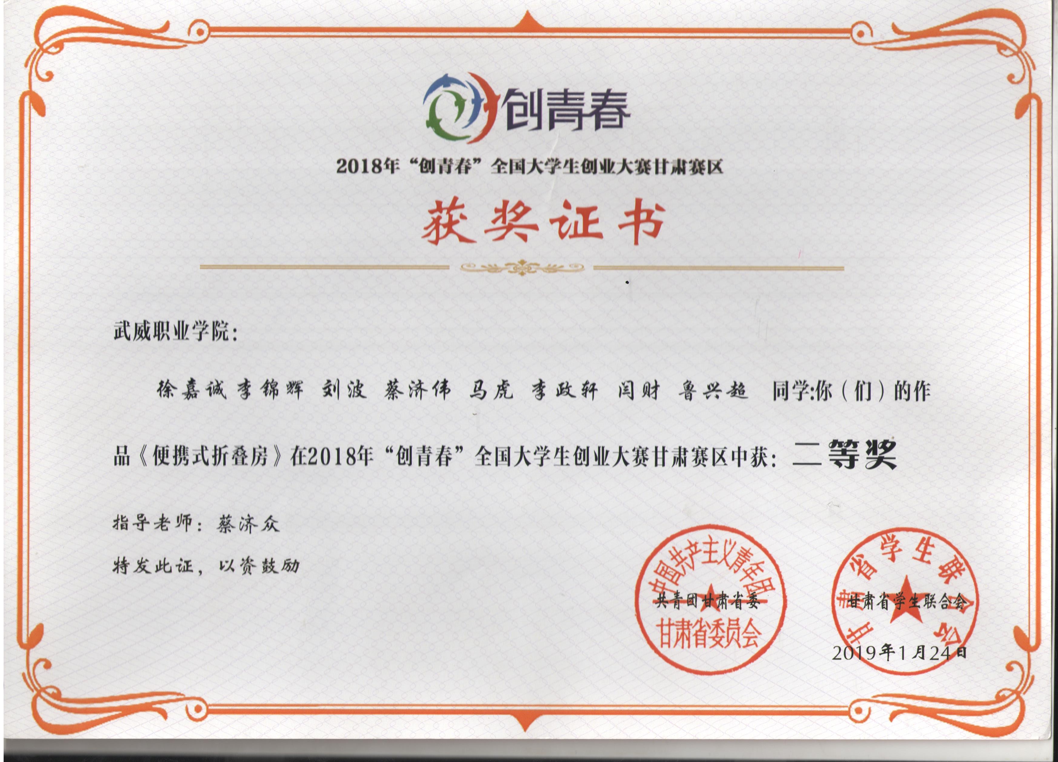2018年“創(chuàng)青春”全國大學(xué)生創(chuàng)業(yè)大賽甘肅賽區(qū)《便攜式折疊房》